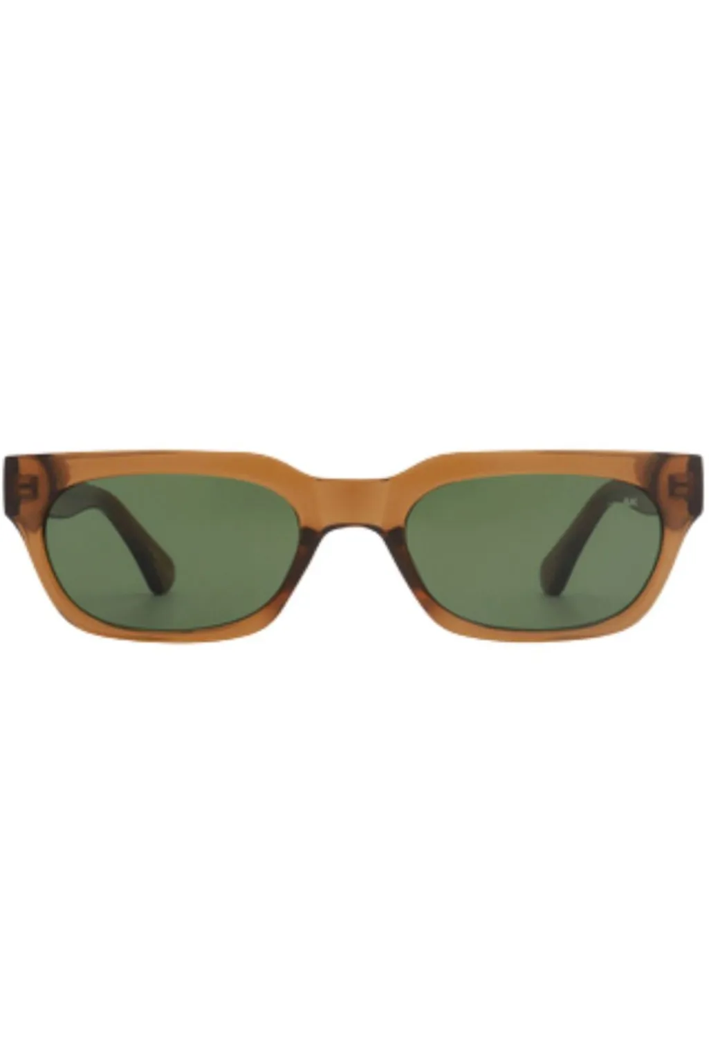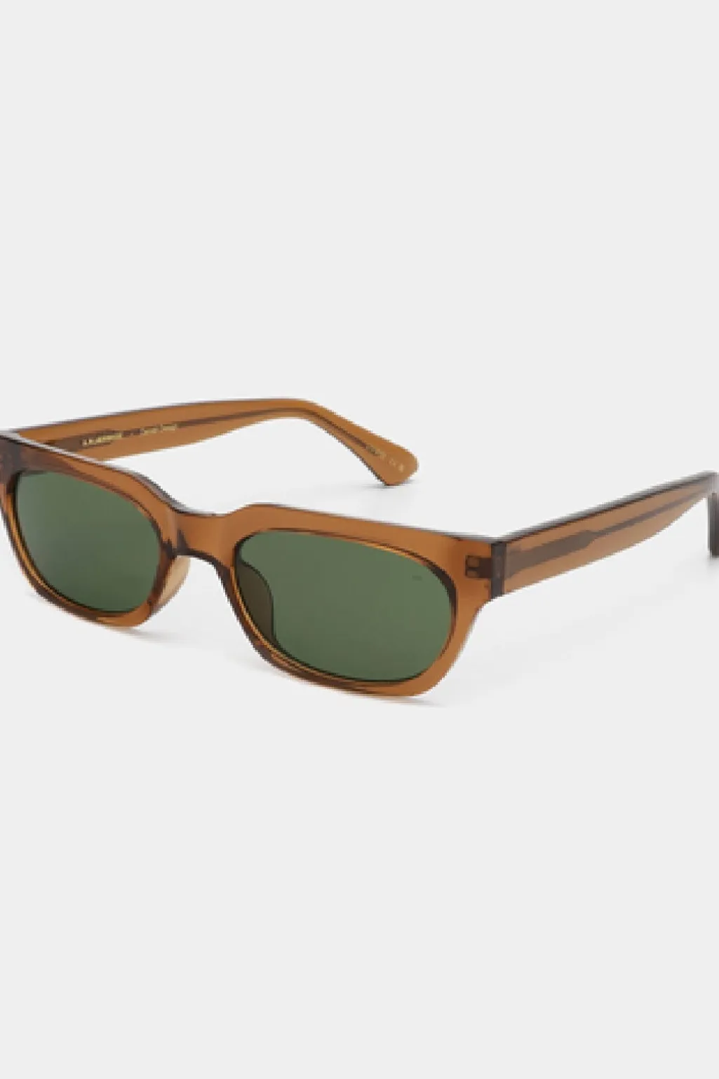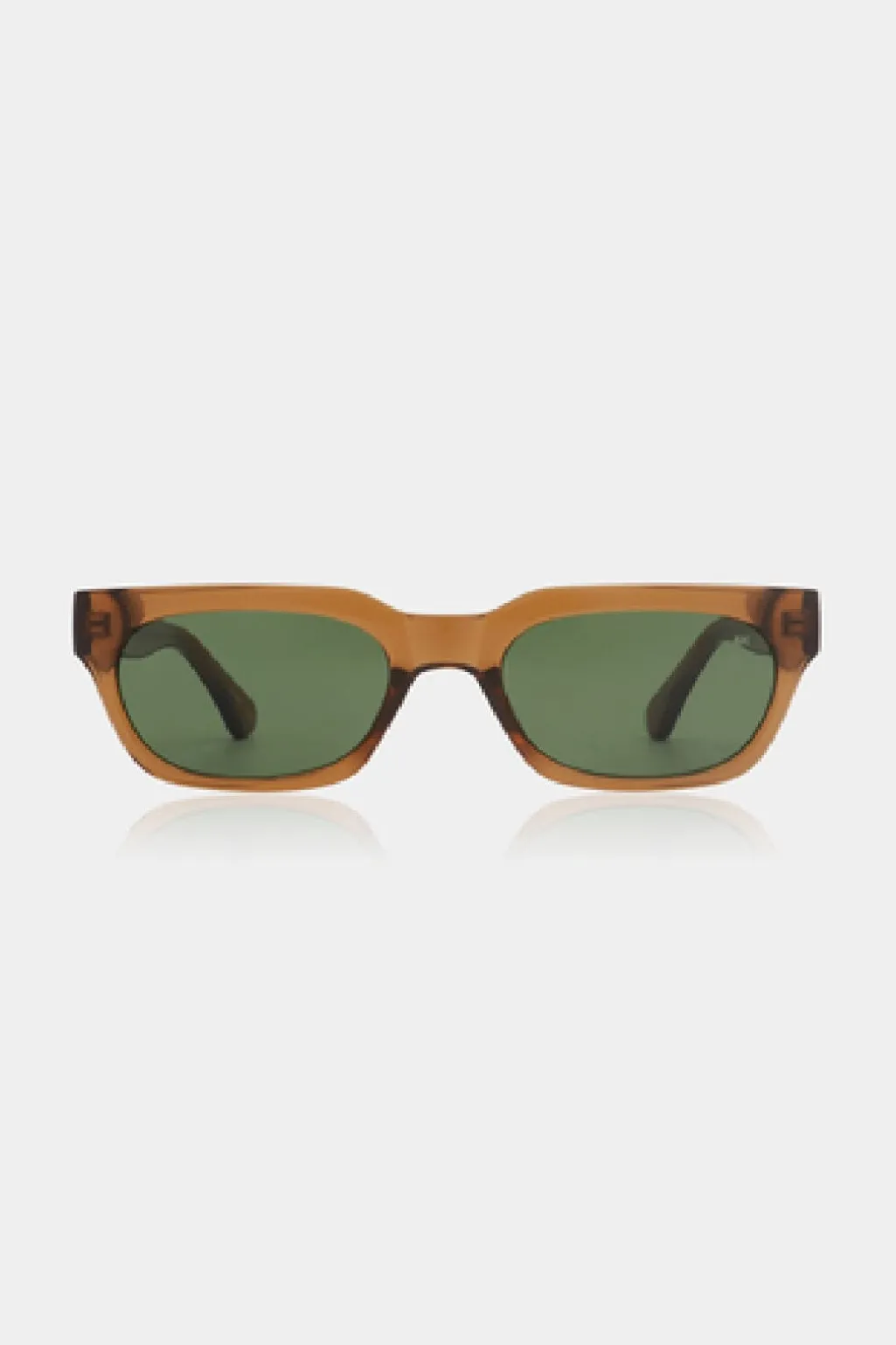 Røgtransparente solbriller fra A. Kjærbede med rektangulær form og grønne linser. Brillerne har UV400-beskyttelse og er fremstillet i holdbart Tritan Renew-materiale med formbare stænger.