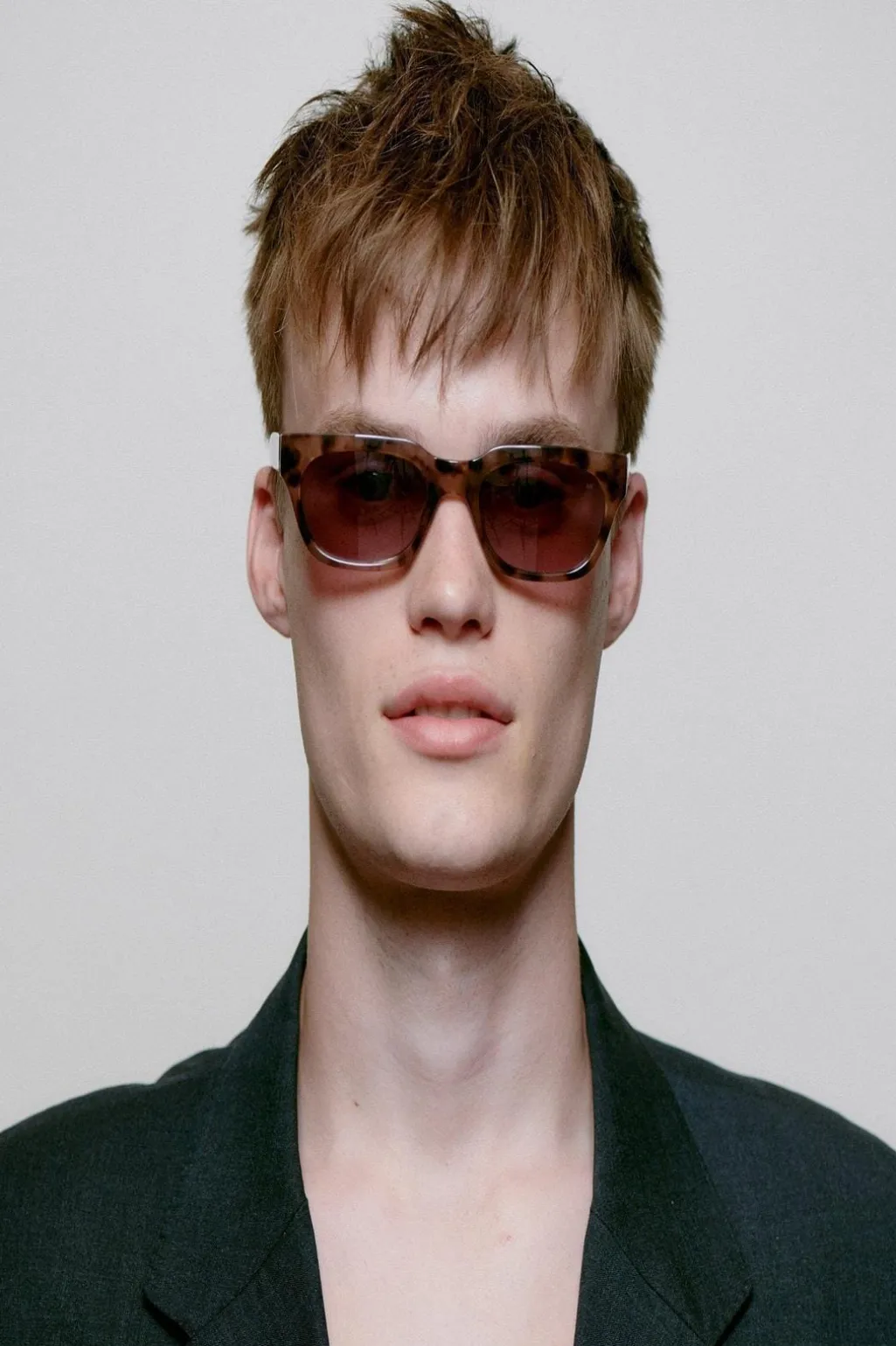 Solbriller fra A. Kjærbede i Tritan Renew med rektangulær form og bløde kanter. Stellet har en brun tortoiseshell-farve med gradientlinser, der er mørkere foroven og lysere forneden.