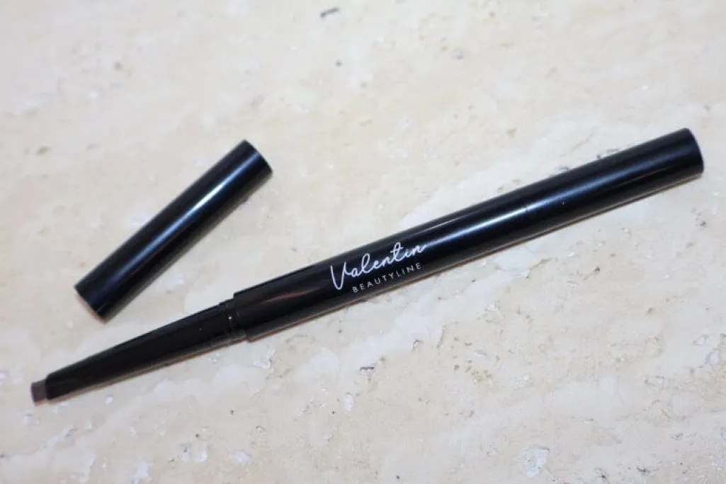 Sort øjenbrynsblyant fra Valentin Beautyline med en skrå spids og pulvertekstur. Den slanke blyant har et beskyttende låg og er nem at have med i tasken.