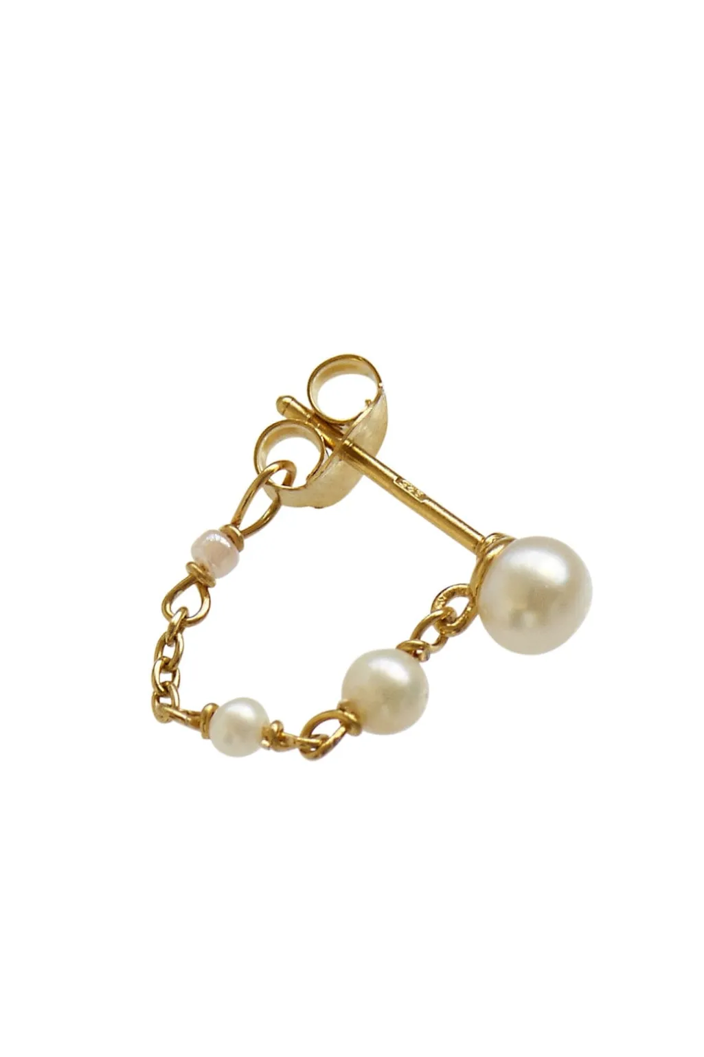 Øreringe fra Stine A med perler og kædedesign. Smykket kombinerer en enkel stift med en kæde, der er prydet med små perler i en lys nuance.