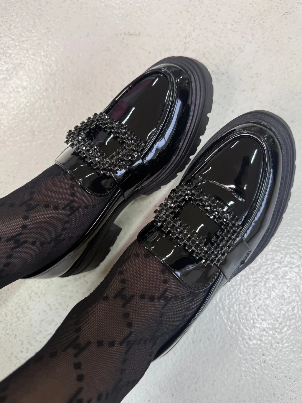 Sorte loafers fra Bloom med en firkantet tå og uden lukning. Skoene er designet med simple linjer og en klassisk sort farve.
