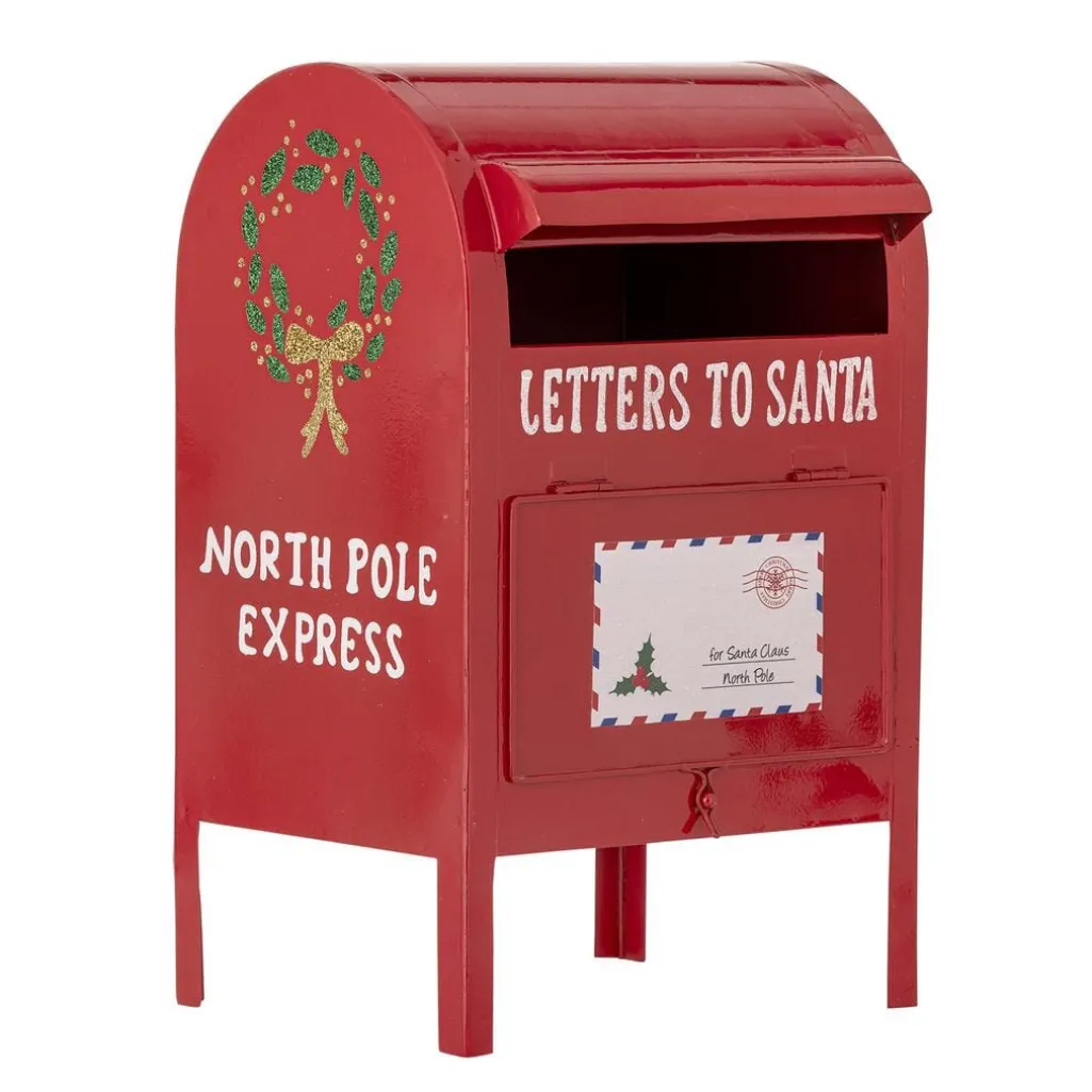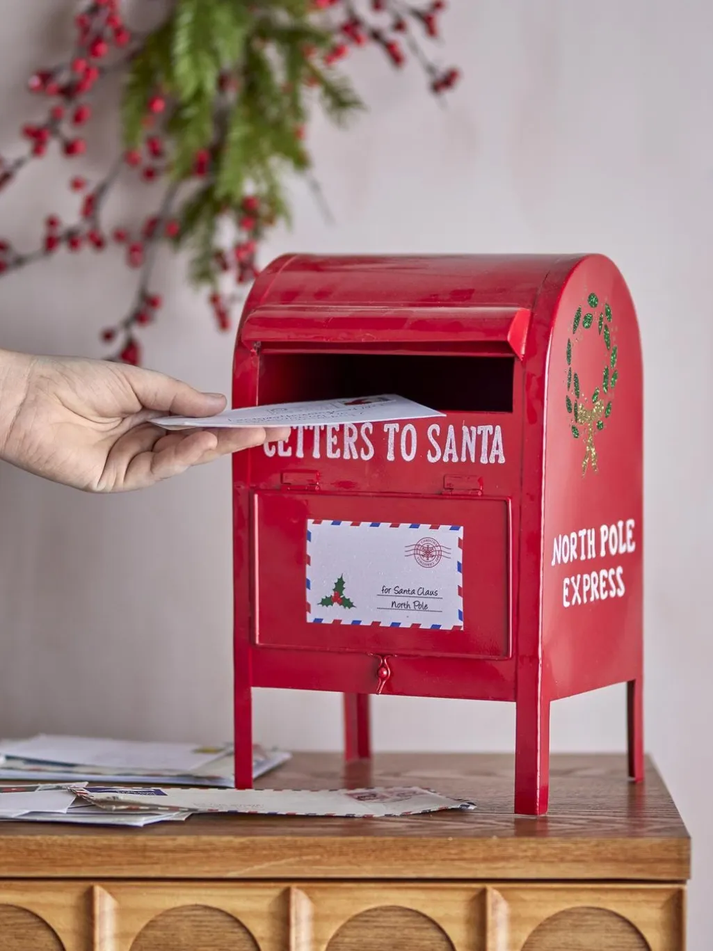 Carlo Deko fra Bloomingville er en dekorativ postkasse i lakeret metal med et charmerende distressed look. Postkassen har en åbning til breve og en praktisk låge, der gør det let at tømme kassen. Perfekt til børnenes julehilsener til julemanden og som en stemningsfuld detalje i juledekorationen.