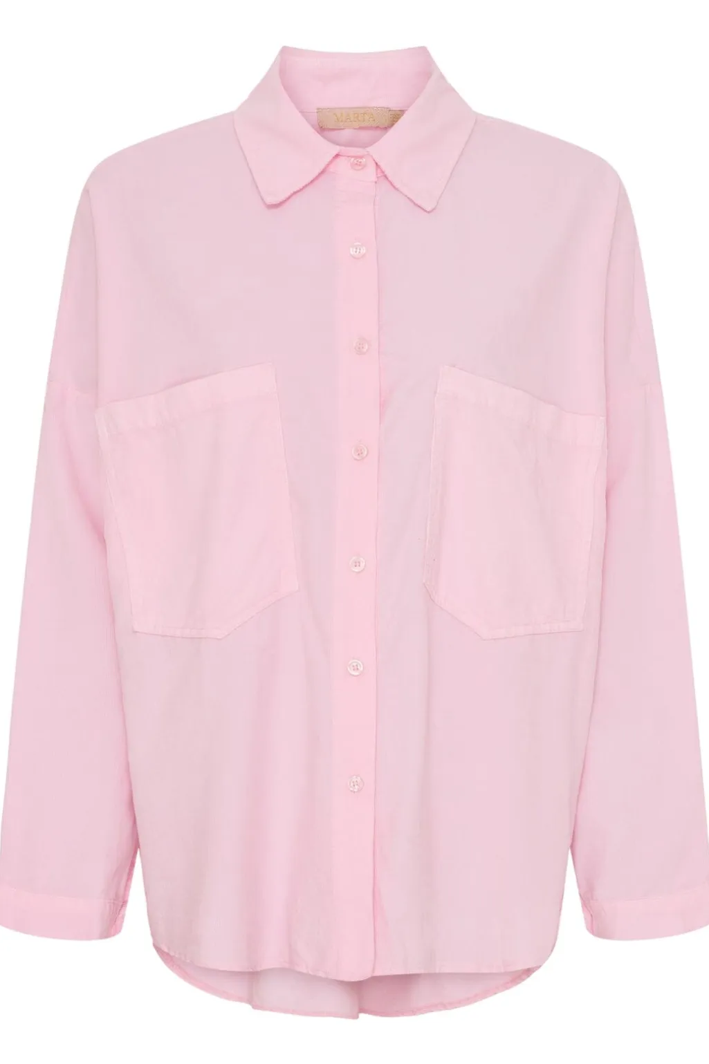 Lyserød skjorte fra Marta Du Chateau i 100 % bomuld. Skjorten har en klassisk krave, lange ærmer og to praktiske forlommer på fronten.