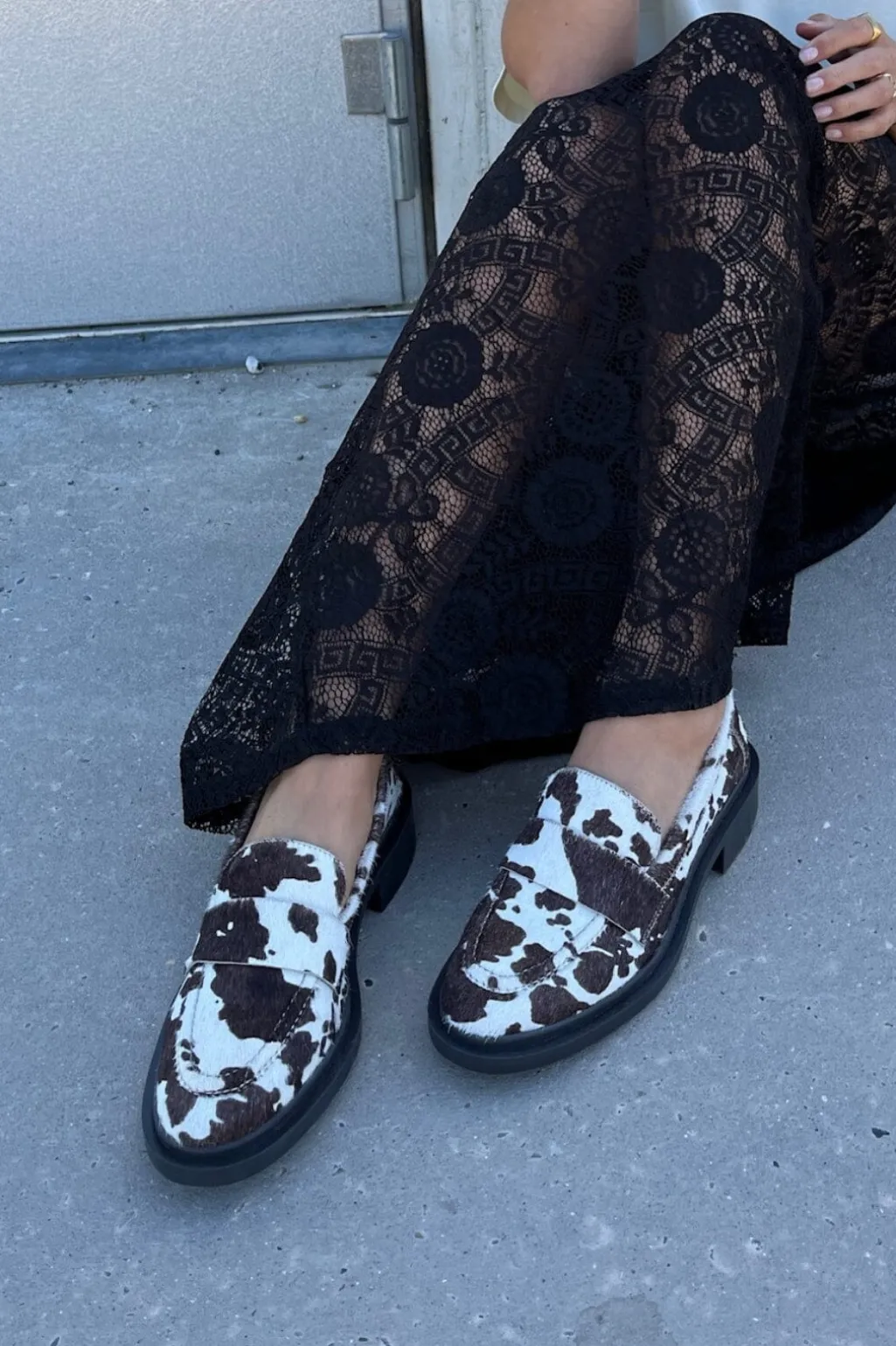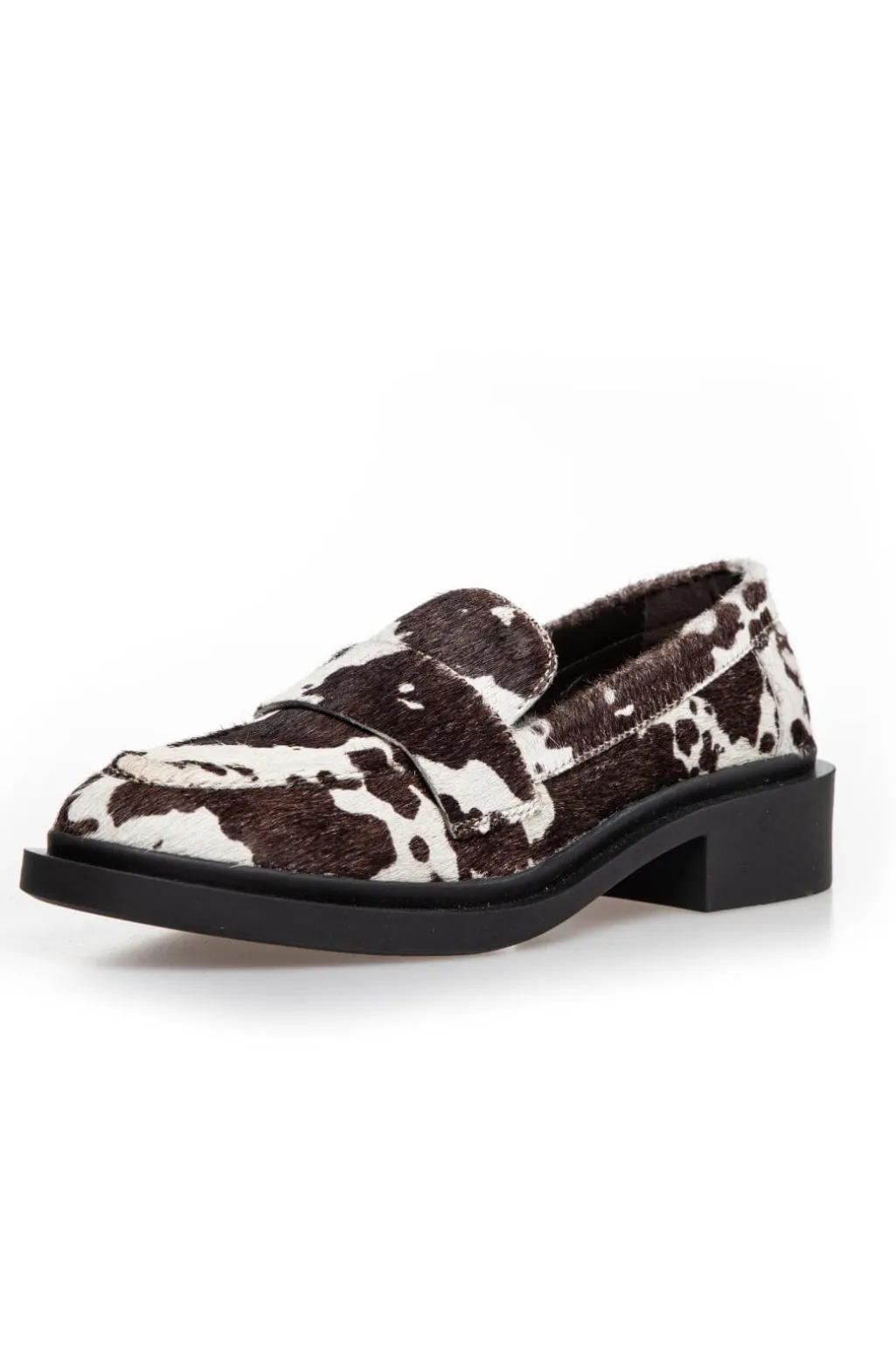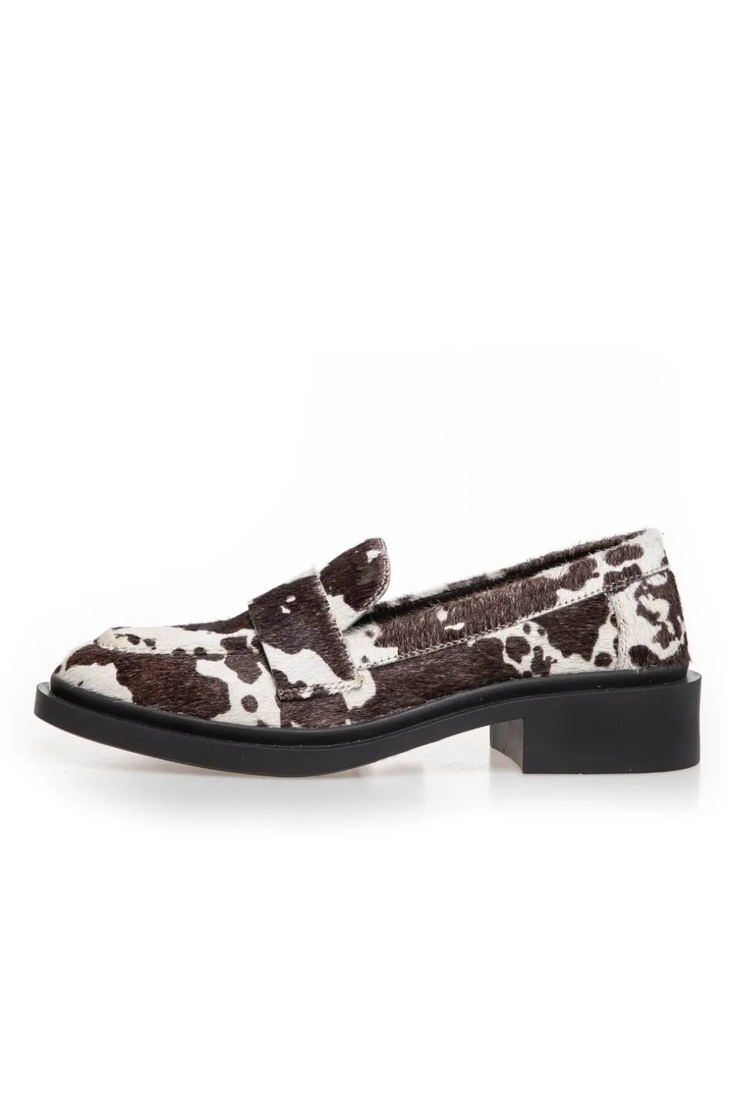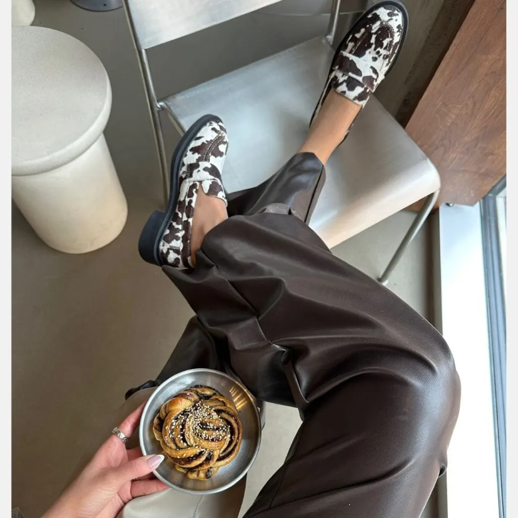 Loafer fra Copenhagen Shoes i hvid og brun. Skoen er lavet af hair-on læder med ko-print og har en fleksibel TPR-sål, der giver god støtte til foden.