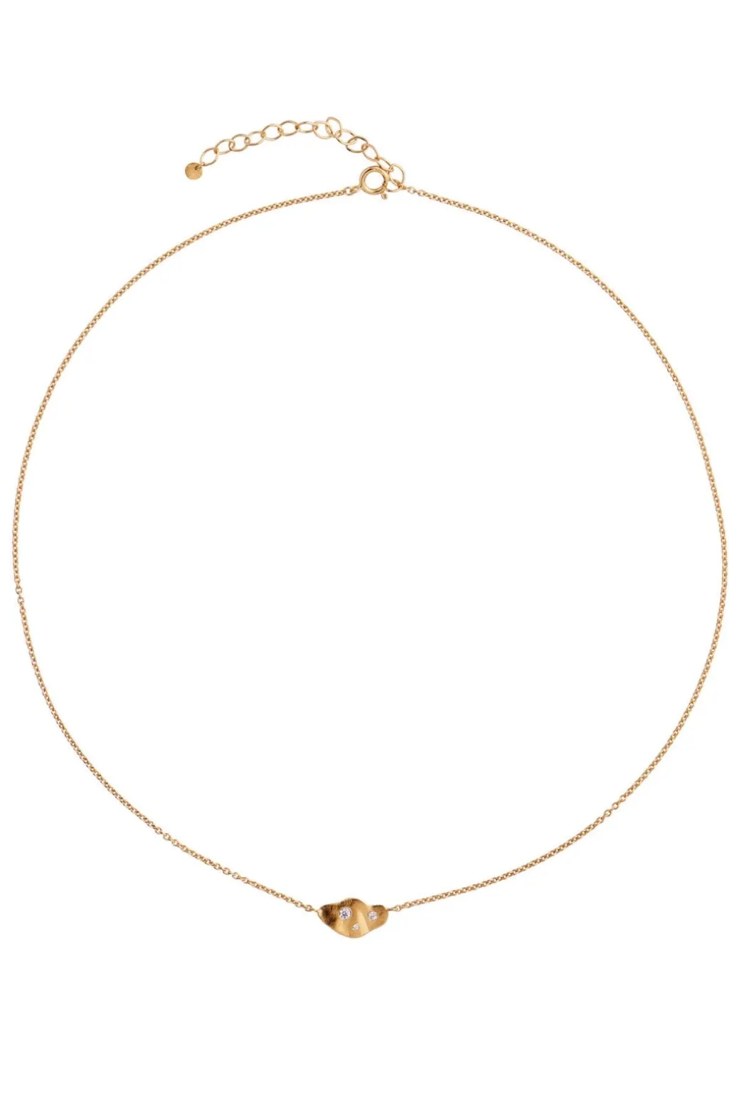 Guldfarvet halskæde fra Stine A med en fin kæde og vedhæng. De to hvide zirkoner i vedhænget skaber et diskret og dekorativt udtryk på den tynde kæde.