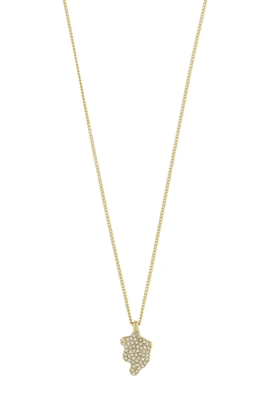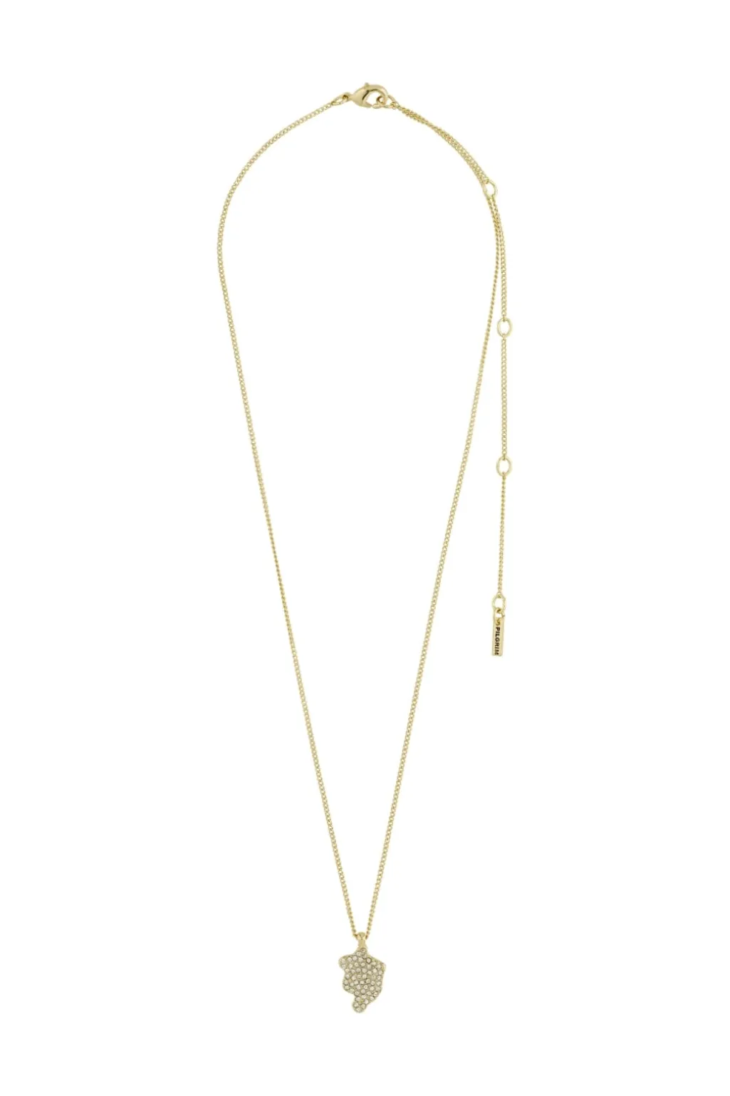 Guldbelagt halskæde fra Pilgrim med funklende Preciosa-krystaller. Kæden er fremstillet af genanvendte materialer og har et skinnende vedhæng med krystaldetaljer.