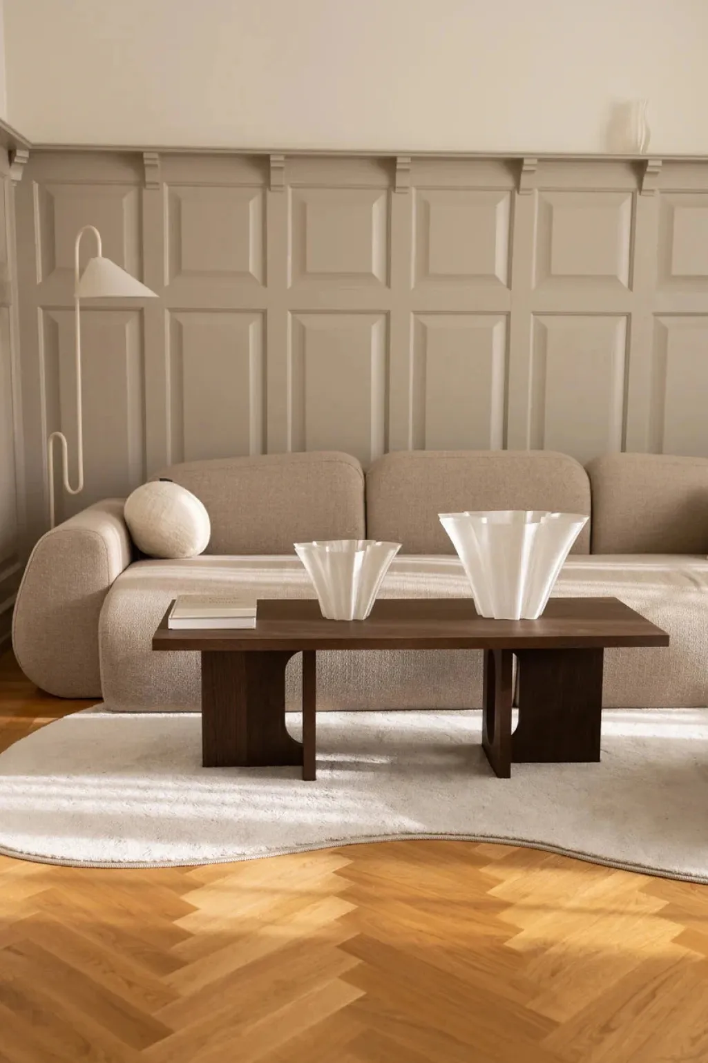 Gennemsigtig vase fra Bloom Objects med en bølget, koralinspireret form. Fremstillet med 3D-printteknologi i biobaseret PLA og produceret lokalt i Danmark.