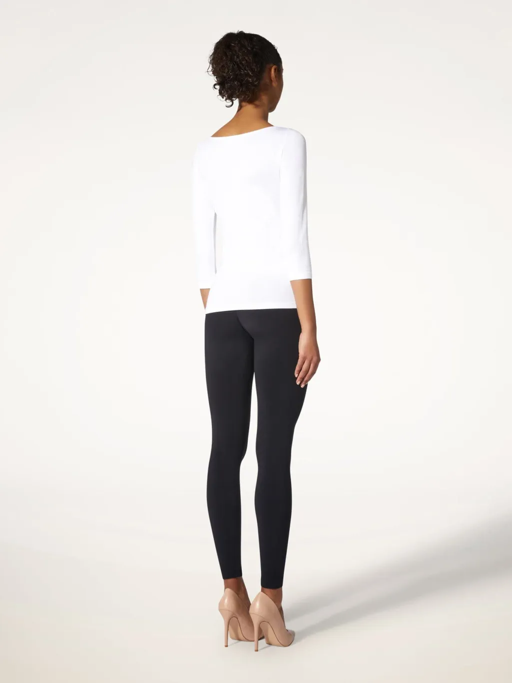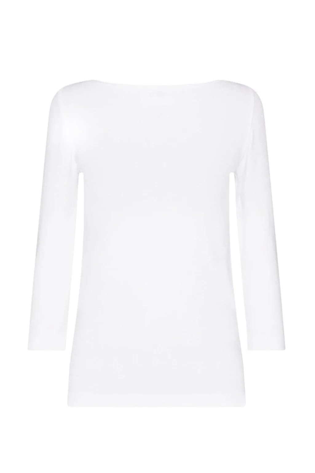 Hvid top fra Wolford med trekvartlange ærmer og bådudskæring. Den tætsiddende pasform giver toppen en glat finish.