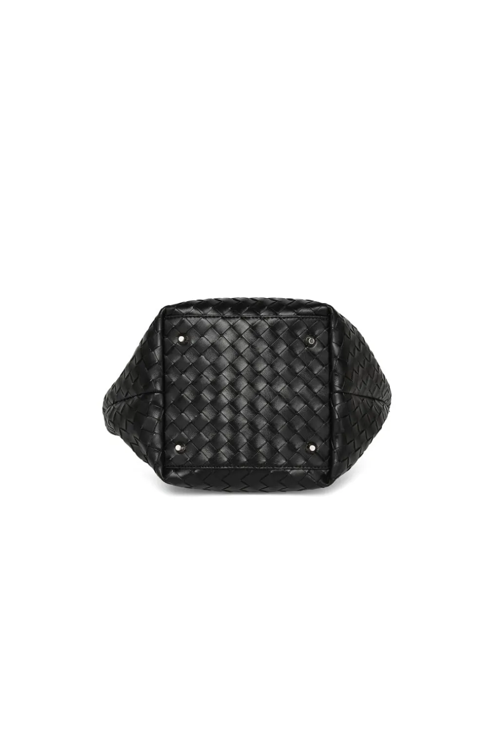Sort taske fra Noella, lavet af 100 % polyurethan med et flettet design over hele overfladen. Tasken har to lange hanke og detaljer i børstet sølv.