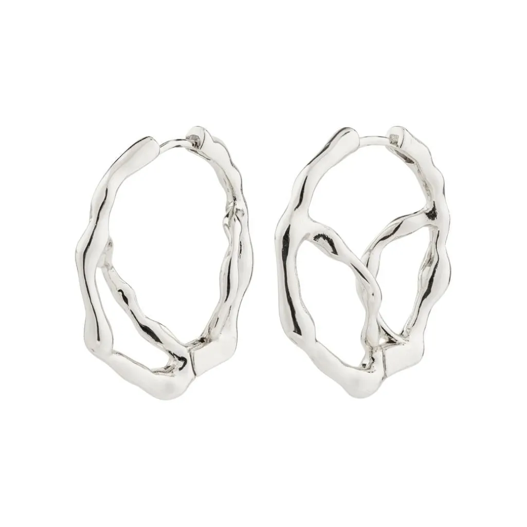 Sølvbelagte øreringe fra Pilgrim med et organisk design og bølgede former. Øreringene har kliklås og er fremstillet af genanvendte materialer med en blank overflade.