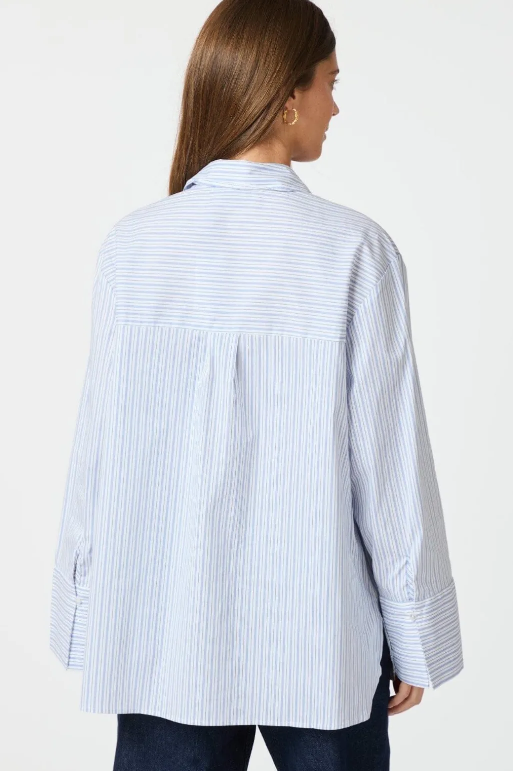 Stribet skjorte fra Neo Noir i lyseblå. Skjorten har en klassisk skjortekrave og lange ærmer med knaplukning foran.