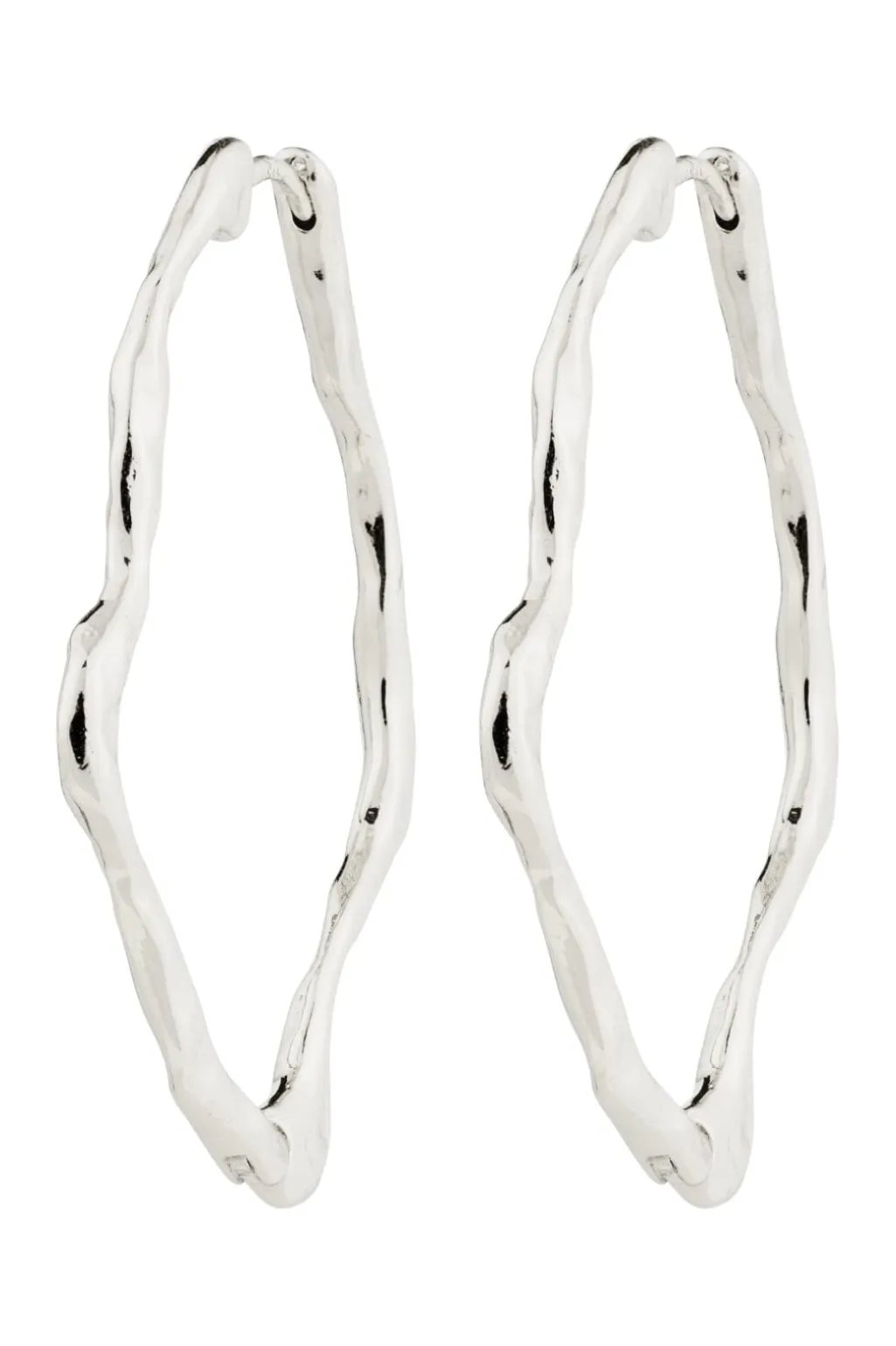 Sølvbelagte hoop-øreringe fra Pilgrim med en bølget form. De lette øreringe har en organisk, uregelmæssig silhuet og en blank overflade.
