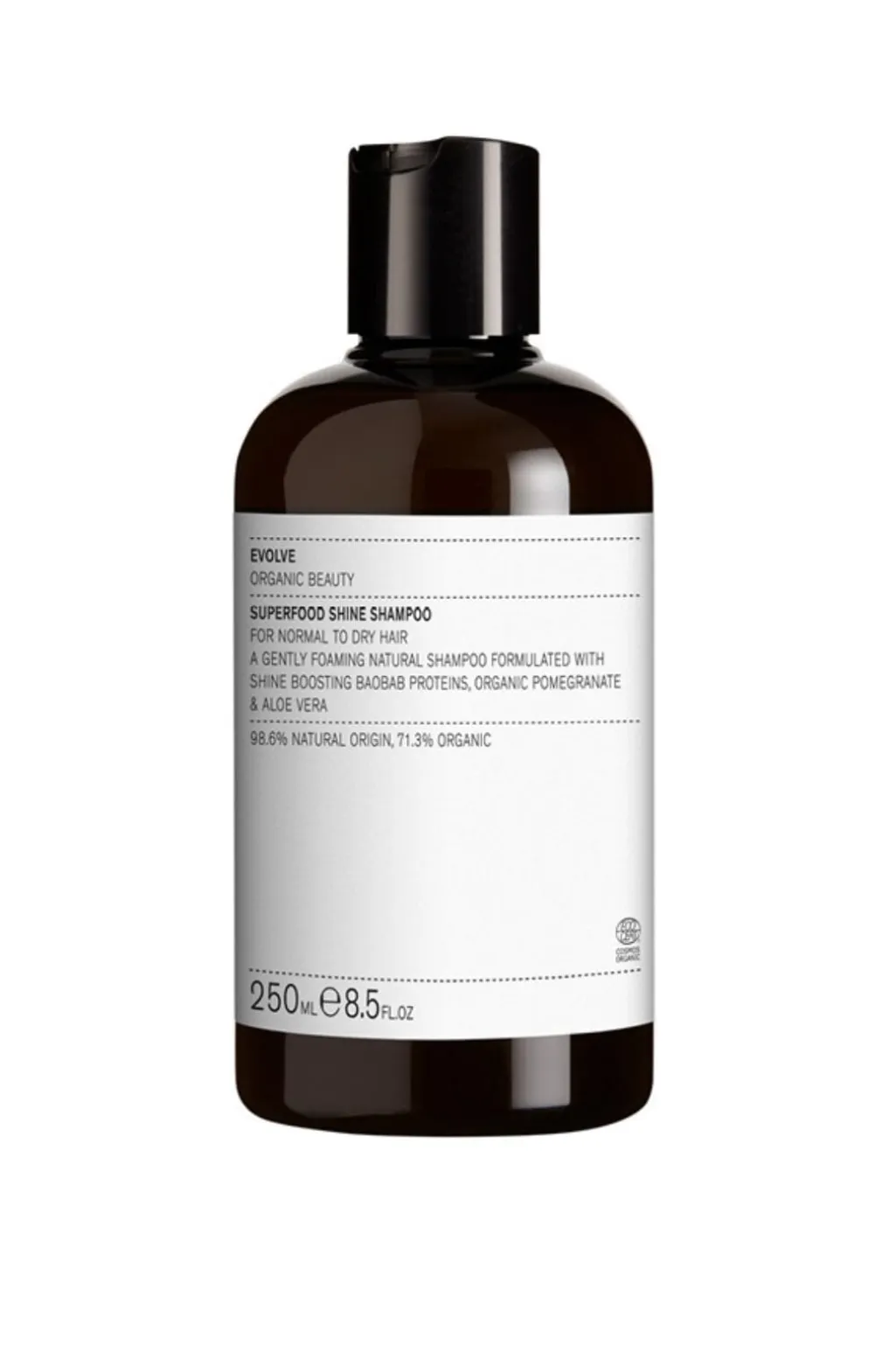 Shampoo fra Evolve med baobab-proteiner og økologisk granatæble til normalt og tørt hår. Shampooen indeholder naturlige renseegenskaber fra sukker og kokos.