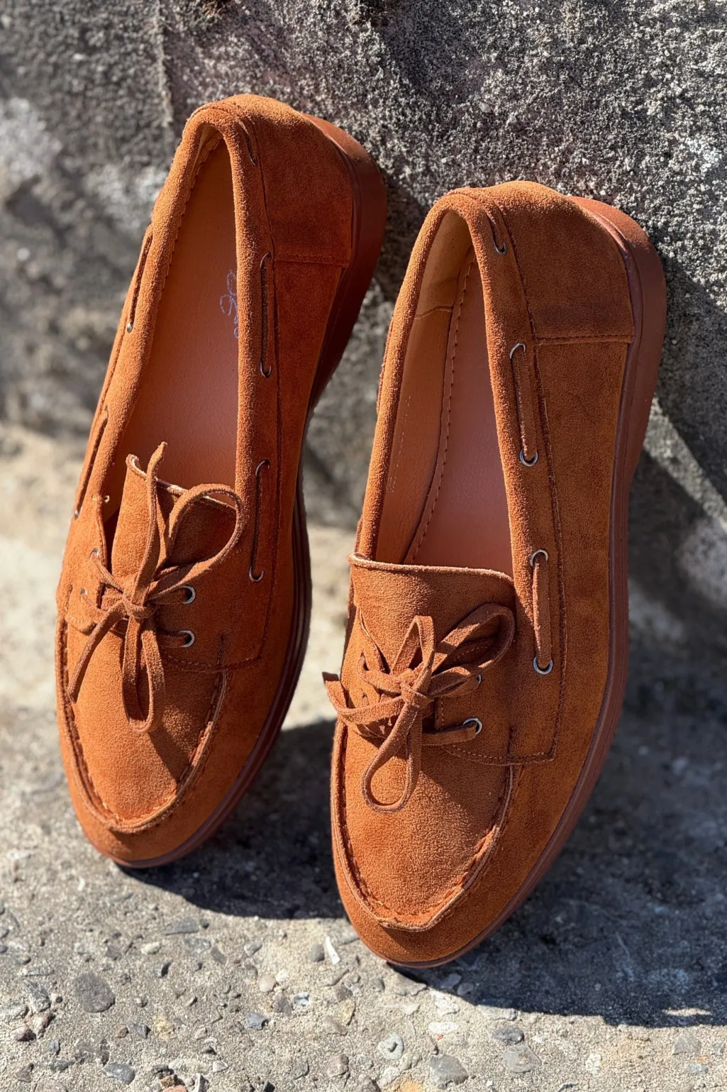 Loafers fra Bloom i en brun-orange farve. Skoen har en rund tå og flade hæle til hverdagsbrug.