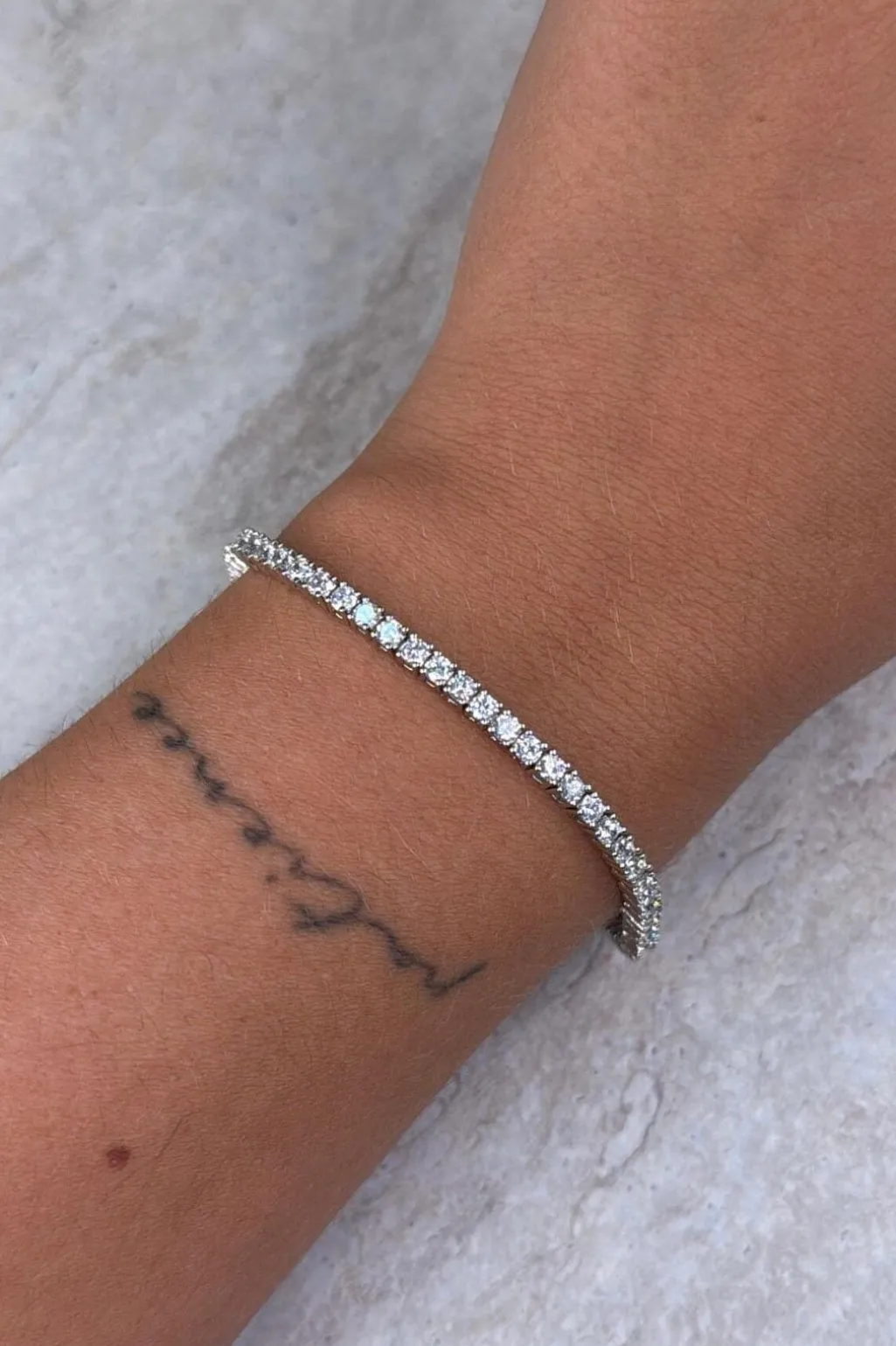 Et tyndt armbånd fra Molly&My Jewellery med små sten i sølvfarvet finish. Armbåndet er lavet af messing og CZ cubic zirconia.