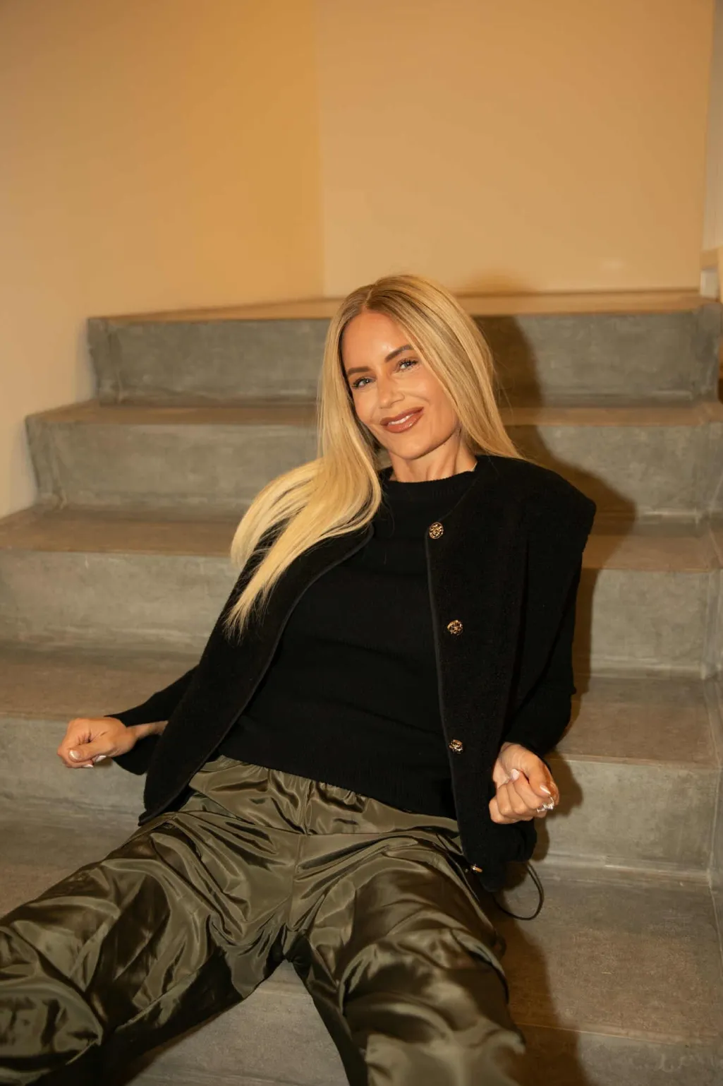 Sort vest fra Valentin Studio med ærmeløst design og knaplukning foran. Vesten har en rund hals og er lavet i ensfarvet sort.