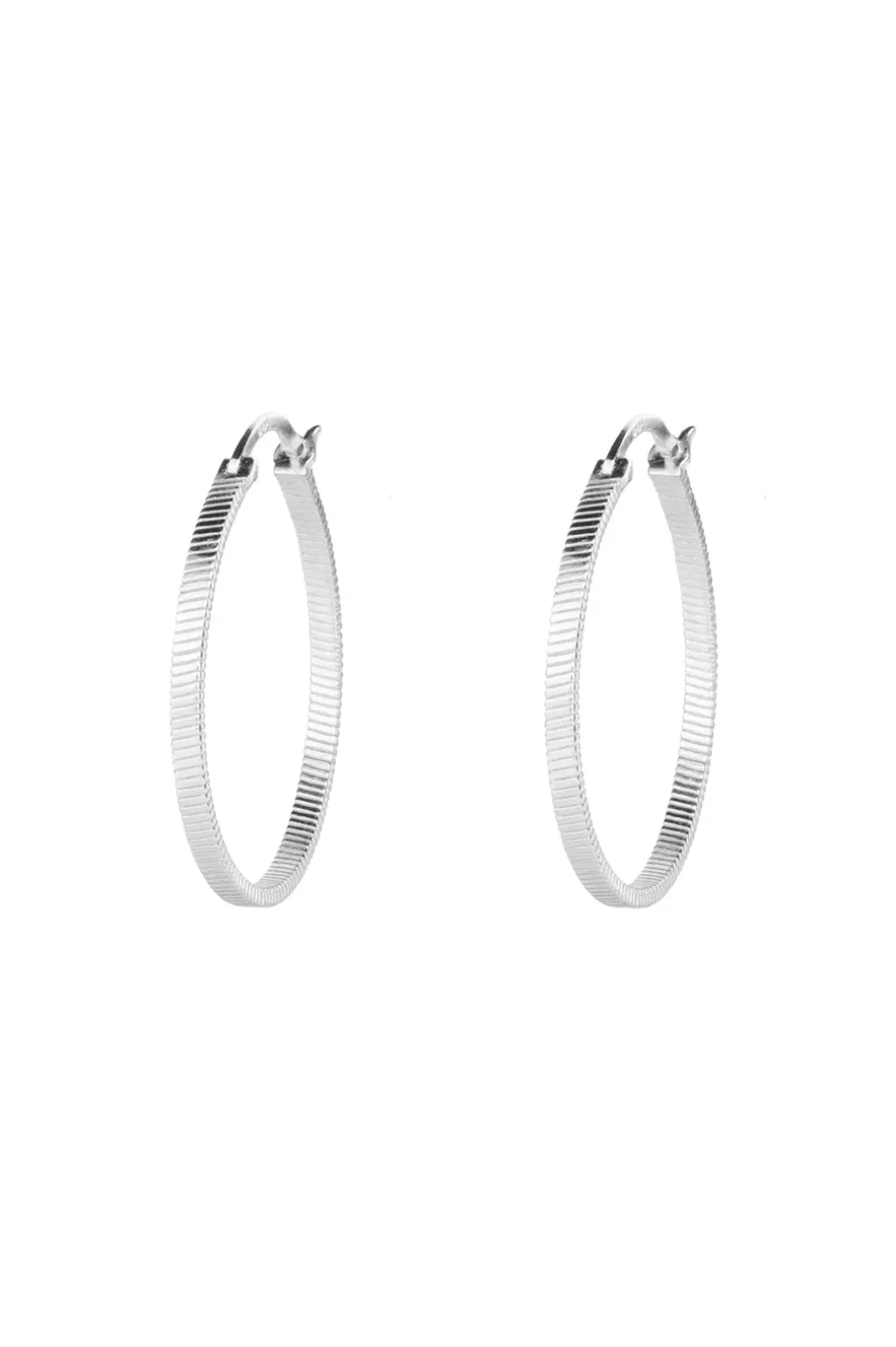 Sølvfarvede creol-øreringe fra House of Vincent med en karakteristisk ribbet overflade. Øreringene har en rund form med fine linjer, der løber hele vejen rundt.