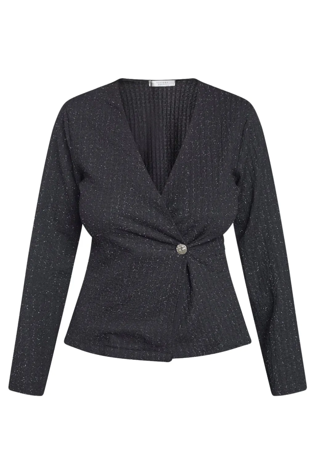 Sort bluse fra Sisters Point med sølvskær i stoffet. Blusen passer til formelle og festlige lejligheder.