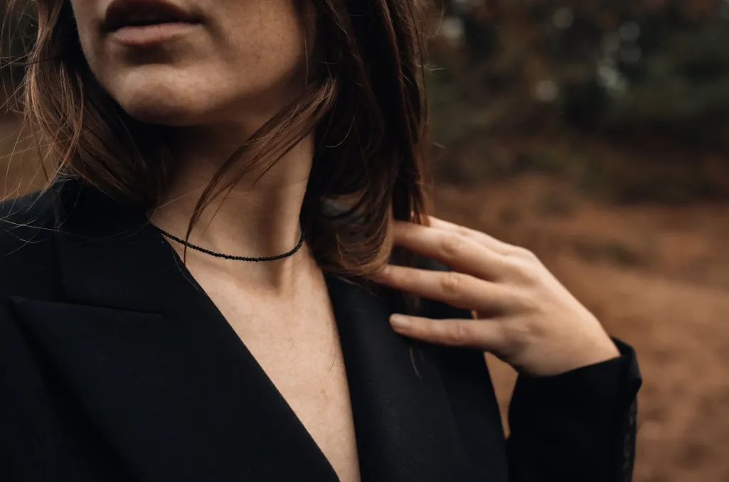 Håndlavet halskæde fra Sorelle Jewellery, fremstillet på eget værksted i Danmark. Smykket kombinerer sort spinel med 925 sterling sølv i et enkelt design.