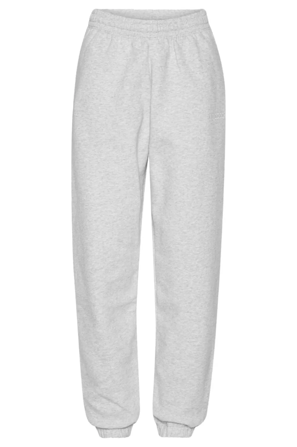 Grå sweatpants fra Rotate i økologisk bomuld. Bukserne har en regular fit med ribkanter ved anklerne og en justerbar talje med snøre og elastik.