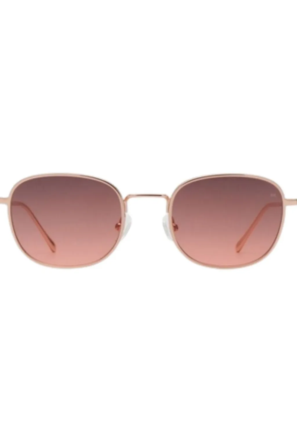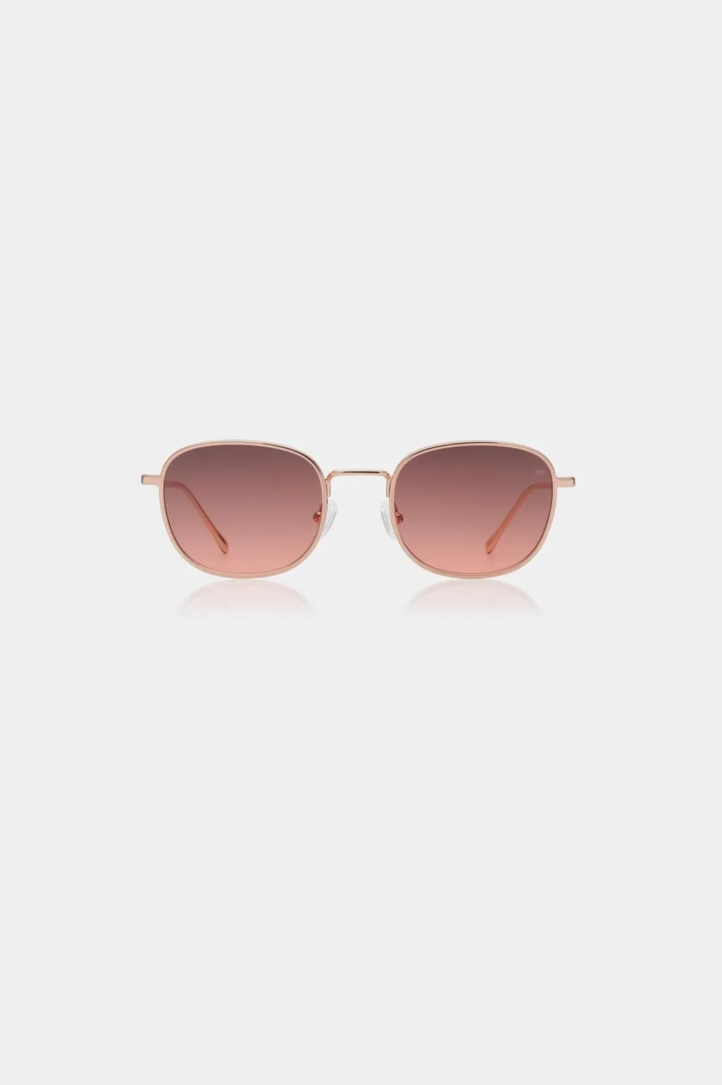 Solbriller fra A. Kjærbede med firkantet stel i rosegold metal. Designet er inspireret af 1960’ernes Hollywood med gradientlinser og en slank metalramme.