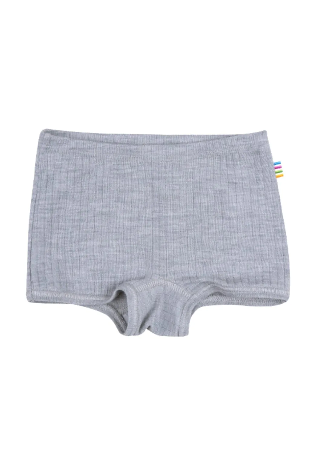 Lysegrå hipsterunderbukser fra Joha med ribbet tekstur. Underbukserne har en elastisk linning og er fremstillet i ren merinould med Oeko-Tex-certificering.