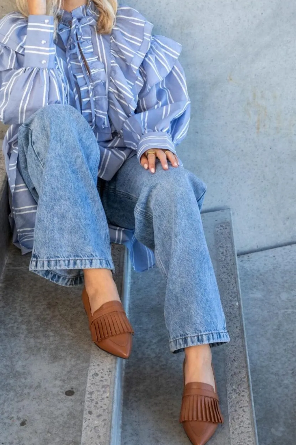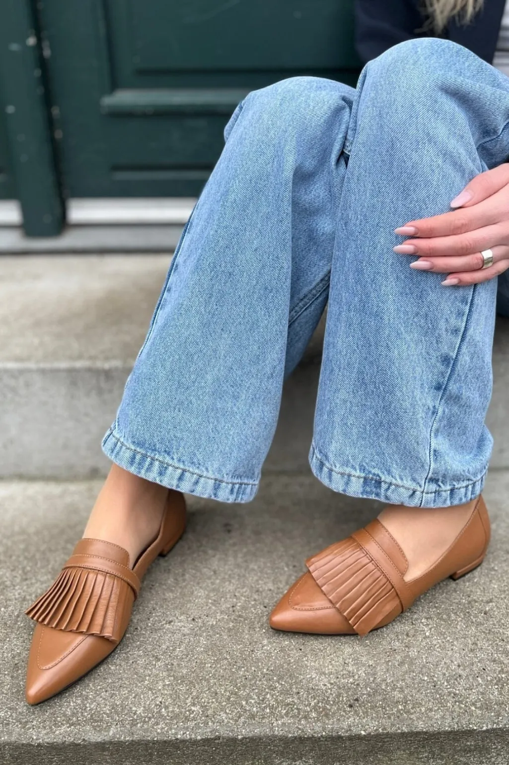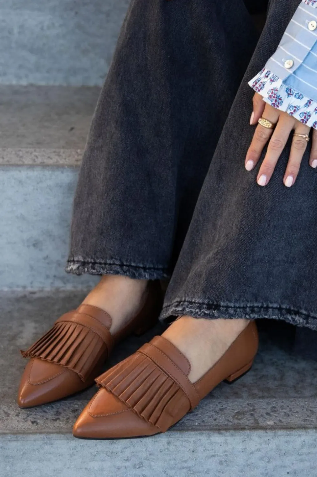 Spidse loafers fra Copenhagen Shoes i brun tobacco-farvet læder. Skoene har plisseret design på overdelen og en lav hæl, der gør dem nemme at gå i.