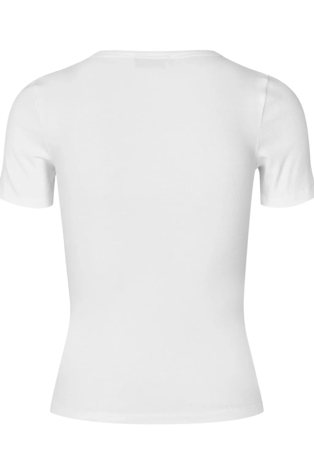 Tætsiddende t-shirt fra Modström i off-white. Den har en ribbet tekstur og korte ærmer. T-shirten sidder tæt til kroppen og har en rund halsudskæring.