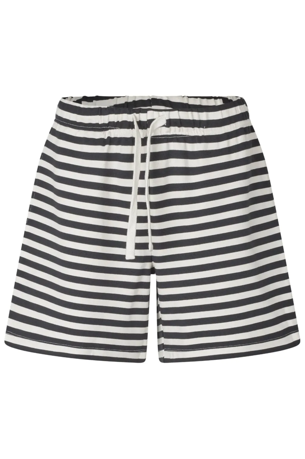 Stribede shorts fra MbyM med maritimt design i mørkeblå og hvide striber. Shortsene har en afslappet pasform og praktiske detaljer som sidelommer og snøre i taljen.