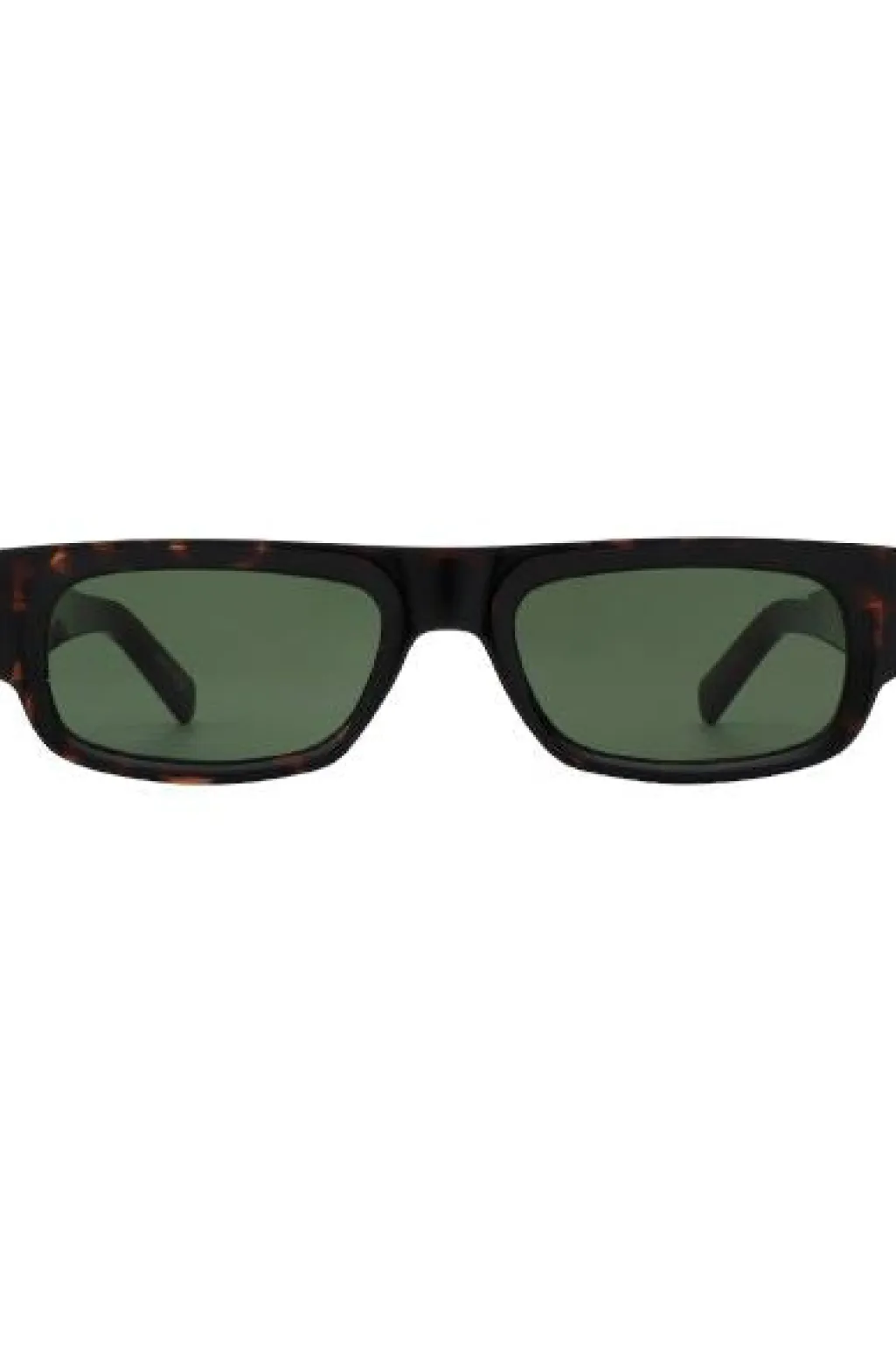 Rektangulære solbriller fra A. Kjærbede med skildpaddemønstret stel og grønne linser. Brillerne har formbare stænger og er udstyret med UV 400-beskyttelse.