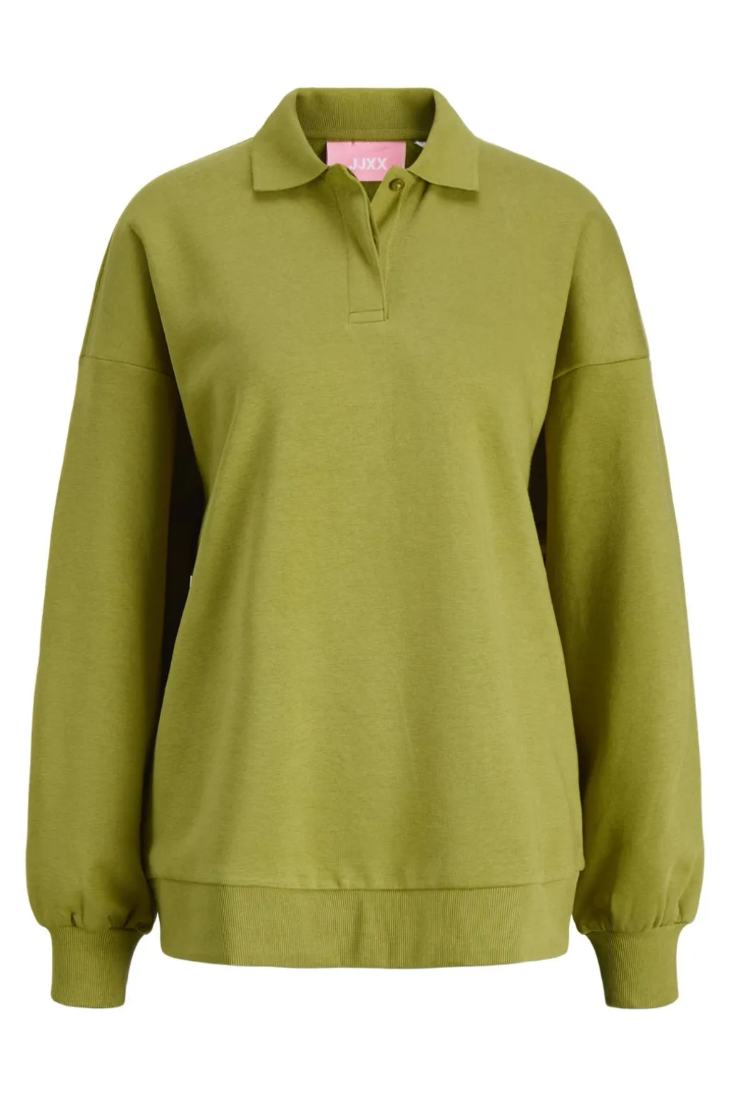 Grøn polosweatshirt fra JJXX med løs pasform. Sweatshirten har en klassisk polokrave og lange ærmer med ribkant ved ærmerne og forneden.