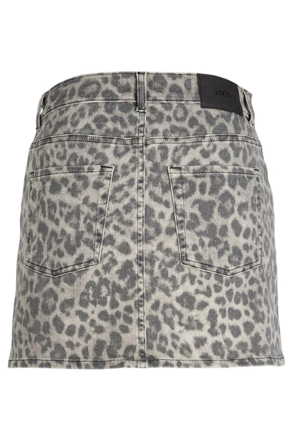 Grå nederdel fra Jjxx med leopardmønster i dæmpede nuancer. Skørtet har dekorative syninger og en praktisk lukning med både lynlås og knapper.
