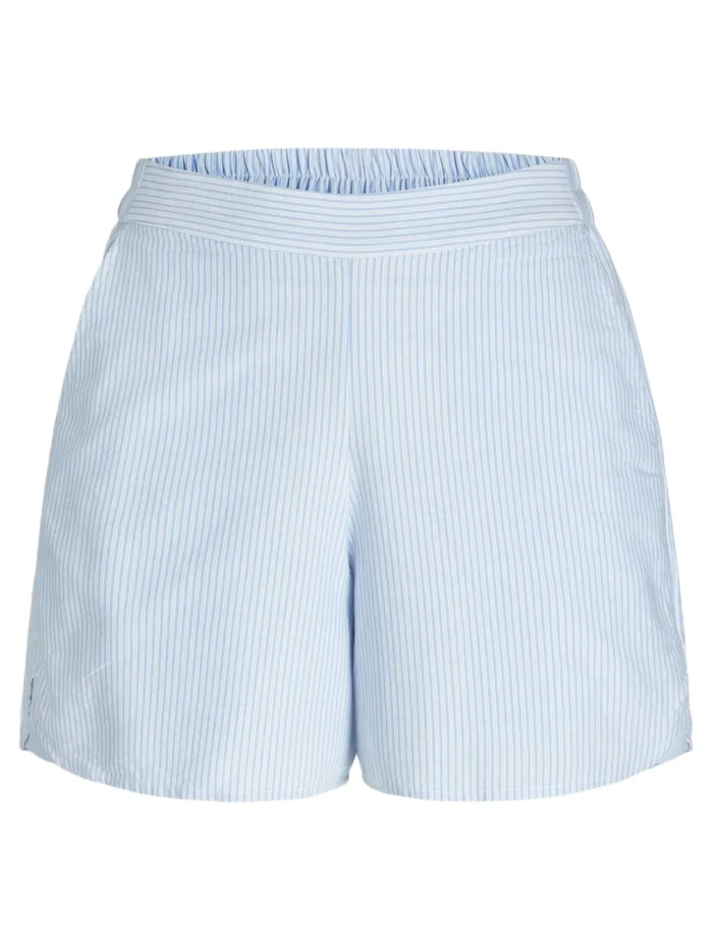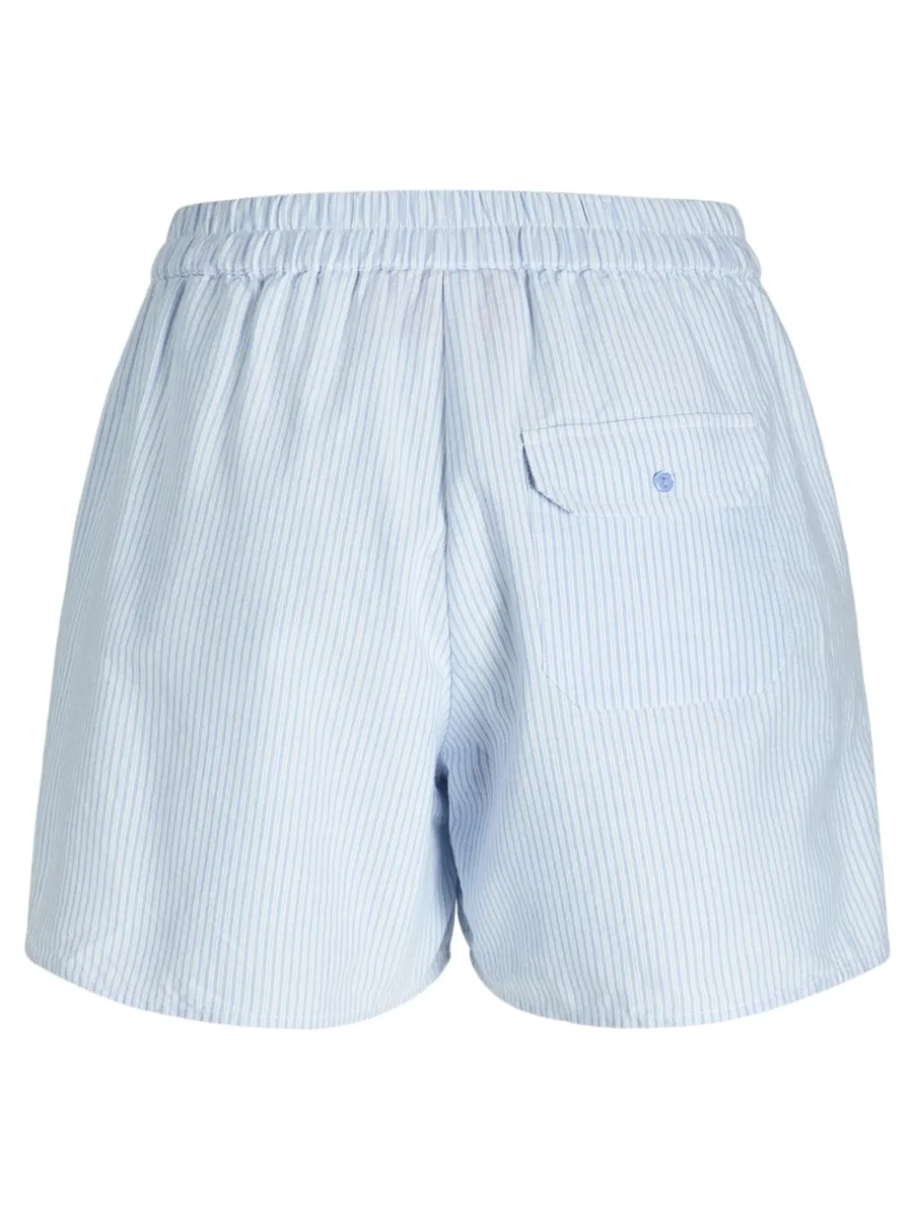 Lyseblå stribede shorts fra Jjxx med elastik og bindebånd i taljen. De har en løs pasform og praktiske lommer, som gør dem nemme at bruge i hverdagen.