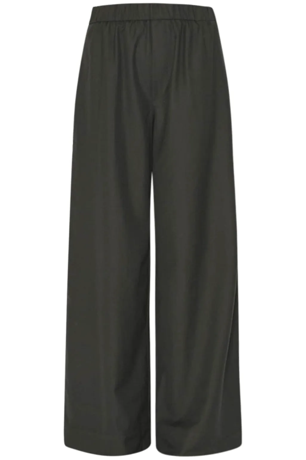 Sorte bukser fra Noella med høj talje og løs pasform. Bukserne har elastikbånd i taljen og brede ben.