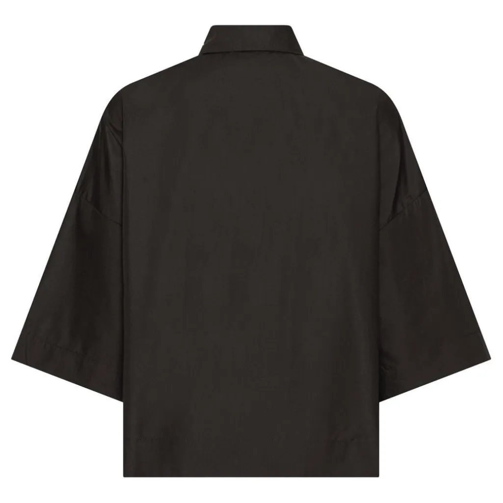 Sort skjorte fra Continue med en løs pasform og 3/4 ærmer. Skjorten har knapdetaljer på ærmerne og en klassisk krave.