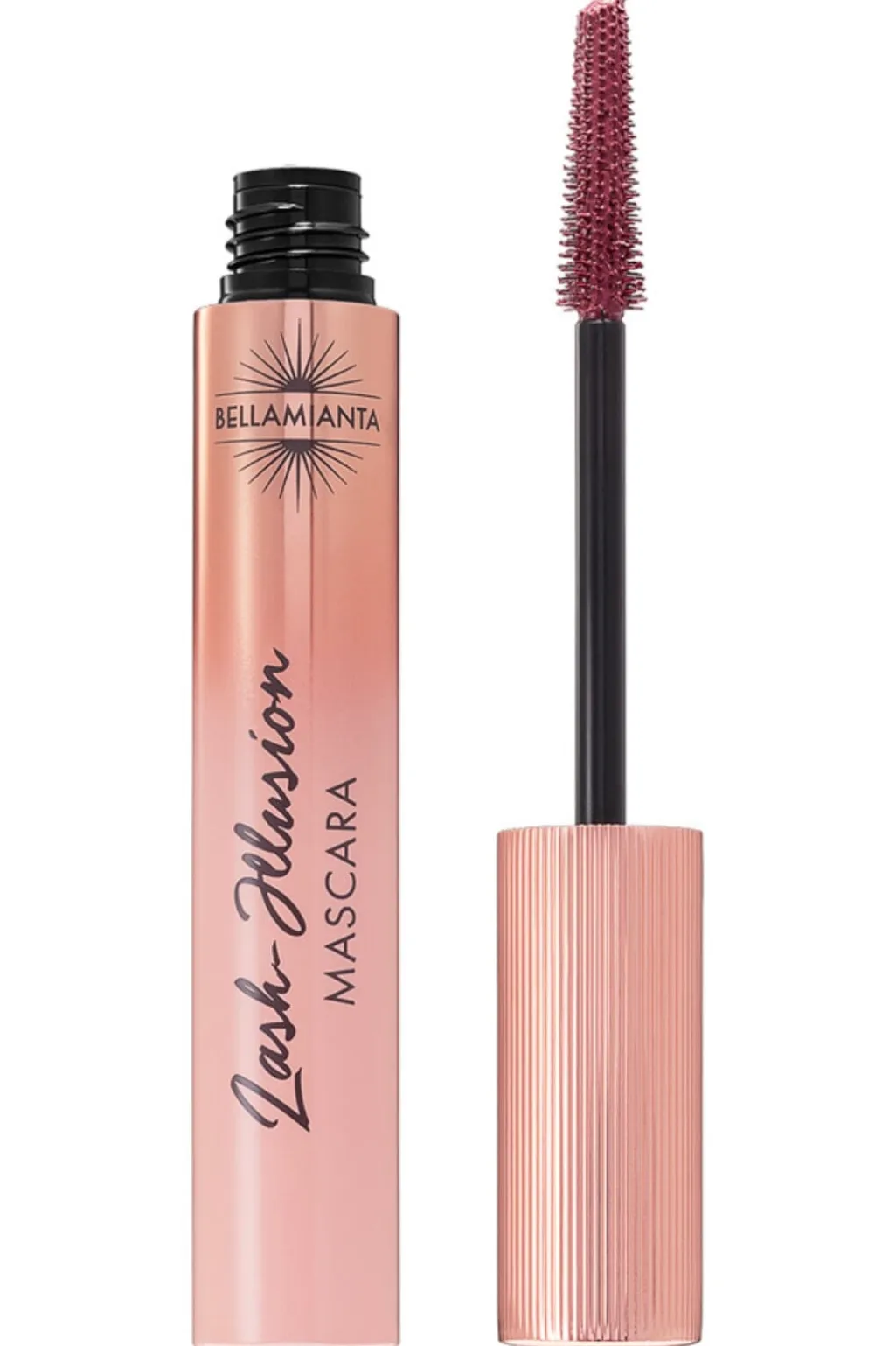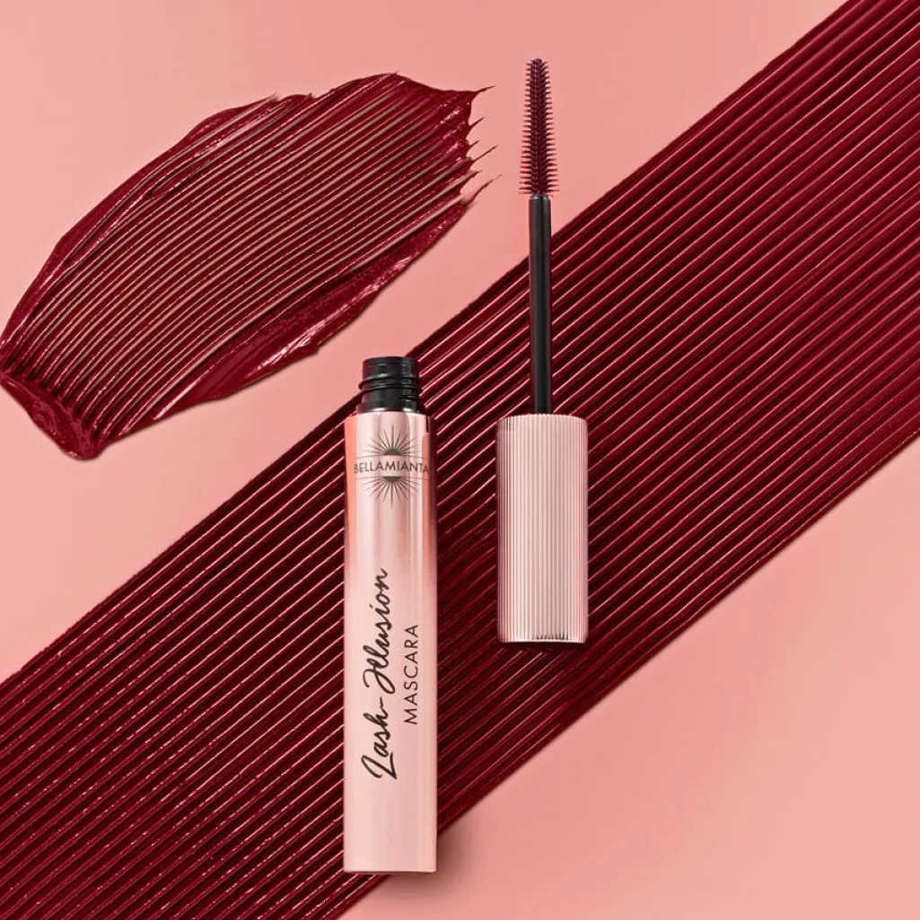 Burgundyfarvet mascara fra Bellamianta med tubing-teknologi, der danner vandafvisende rør omkring hver vippes. Den buede silikonebørste har 200 børstehår til præcis påføring.