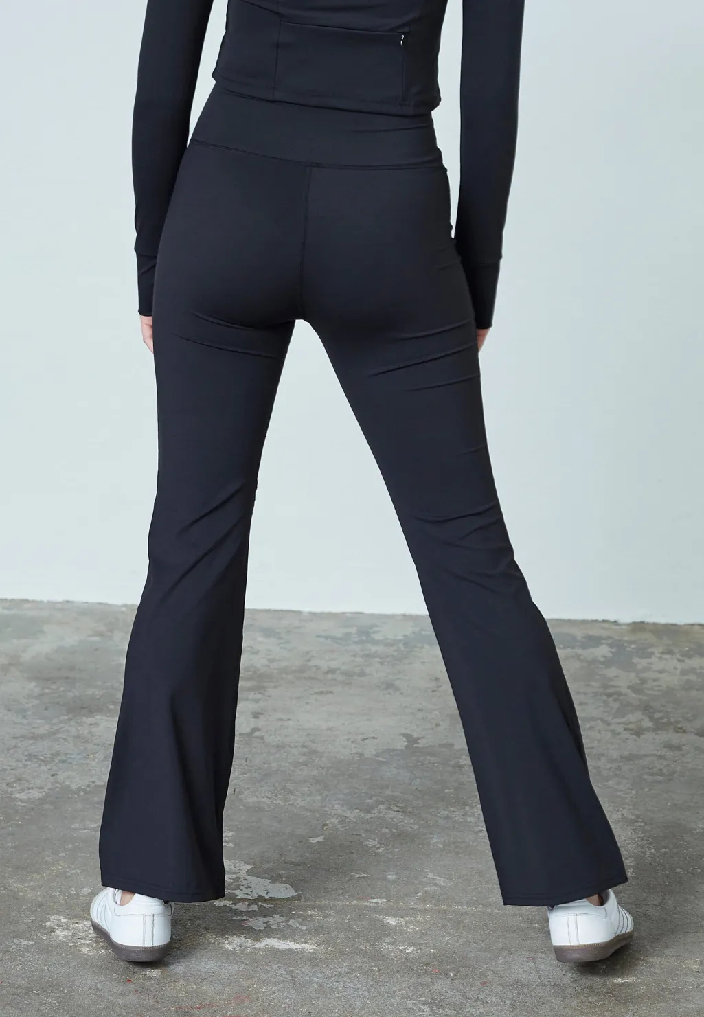 Sorte bukser fra Sisters Point med høj talje og bootcut-pasform. Bukserne er lavet af 60 % nylon og 40 % elastan.