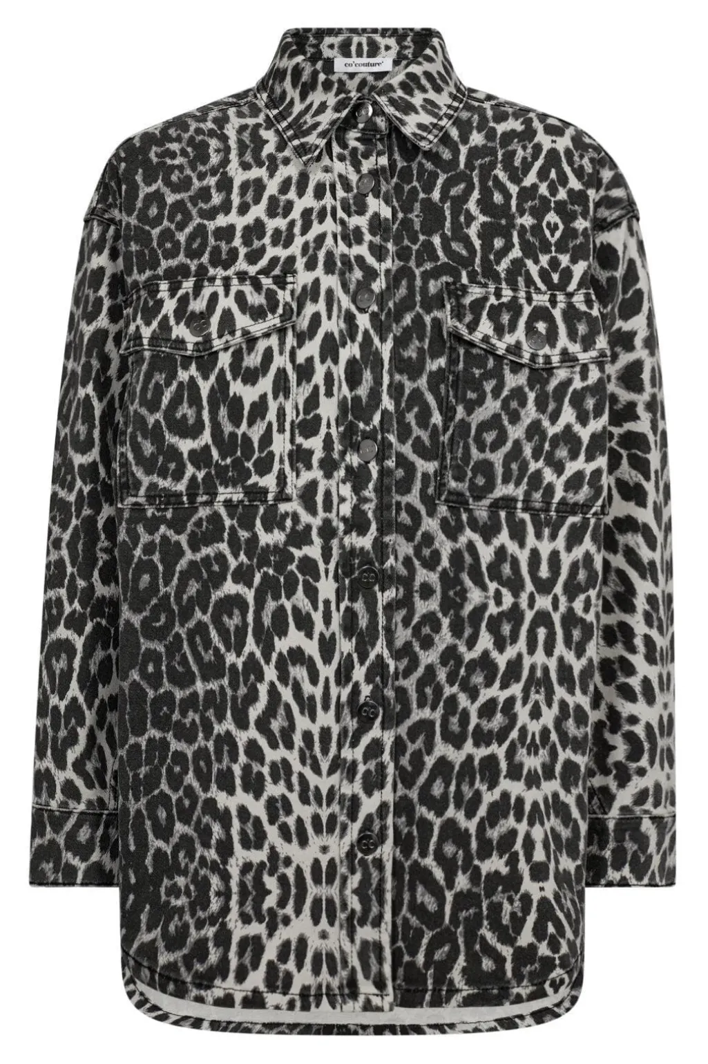 Denimskjorte fra Co’couture med leopardmønster i grå og sort. Skjorten har en krave, knapper hele vejen ned og lange ærmer.