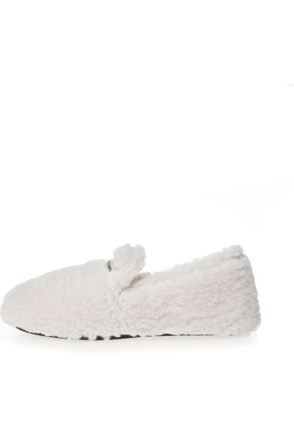 Hjemmesko fra Copenhagen Shoes i cremefarvet plys. Skoen har et blødt plysfor og fleksible gummisåler til indendørs brug.