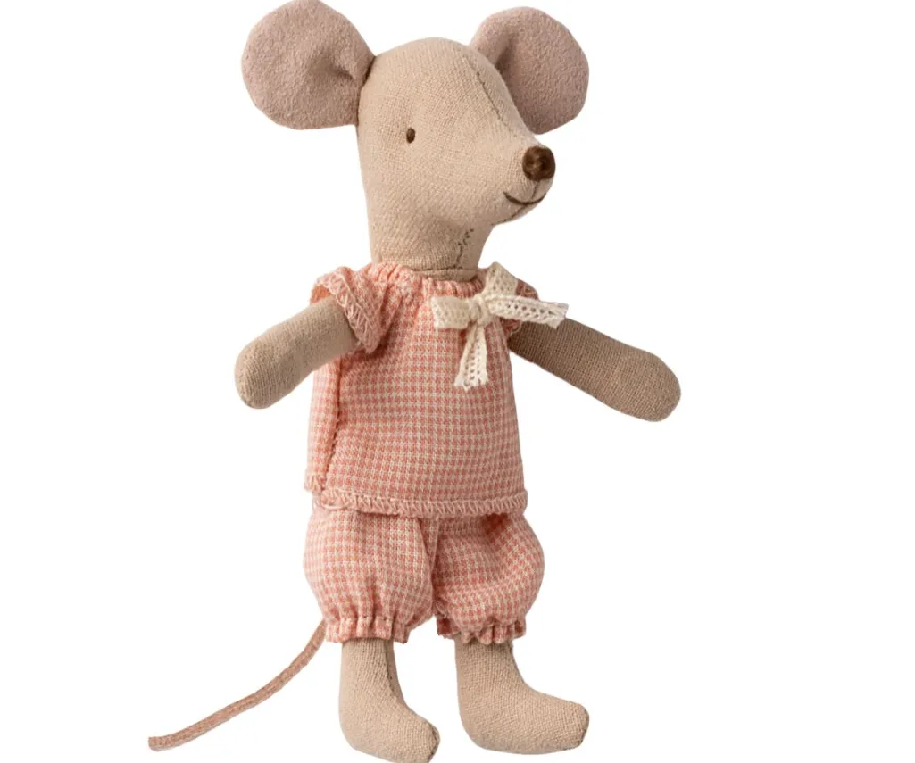 En lille muslegetøj fra Maileg, der kommer i en tændstikæske med vintage-design. Æsken fungerer som en seng til musen.