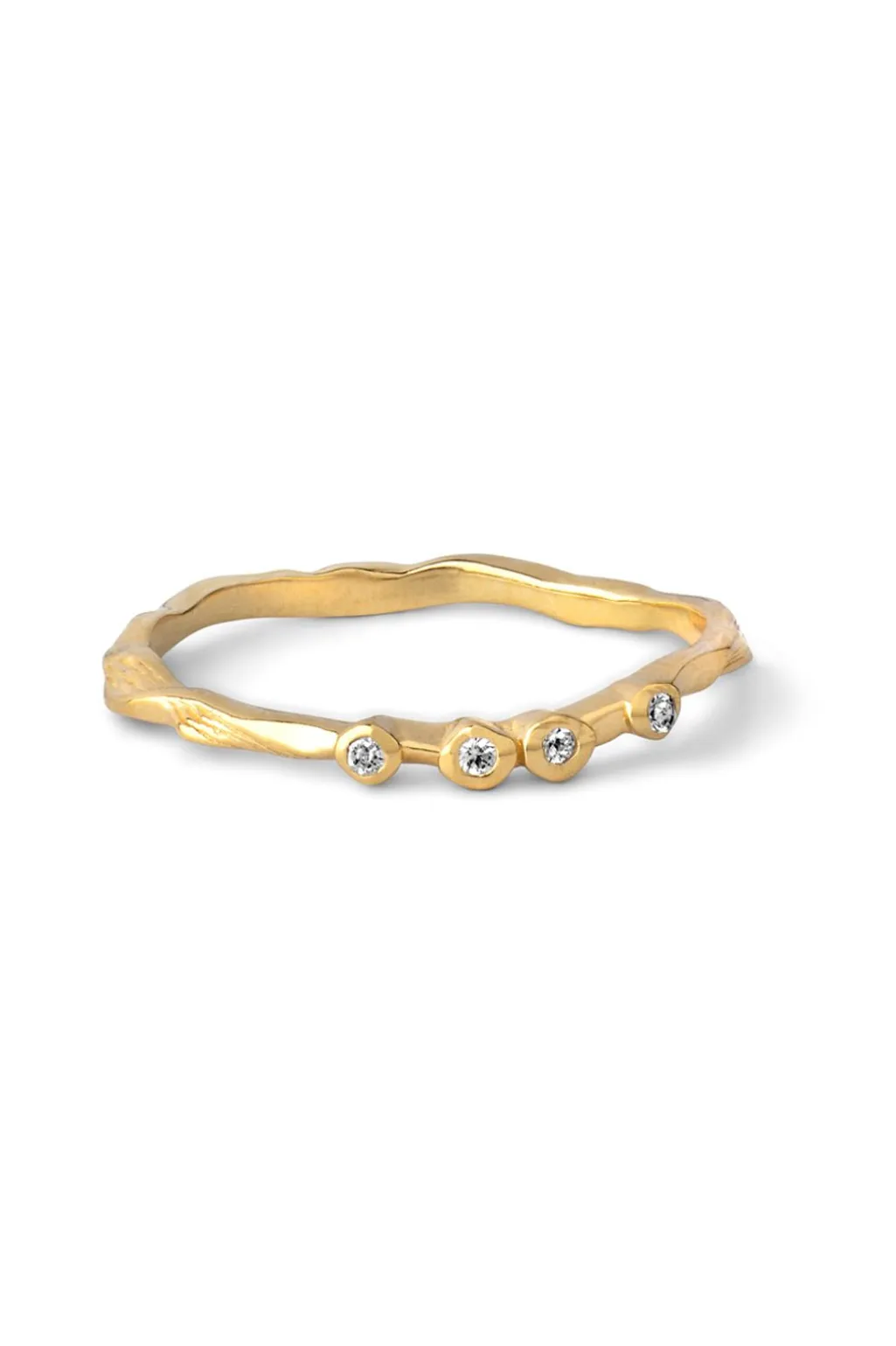 Guldfarvet ring fra Enamel med fire små cubic zirconia-sten. Ringen er fremstillet i 925 sterling sølv med 18 karat forgyldning.