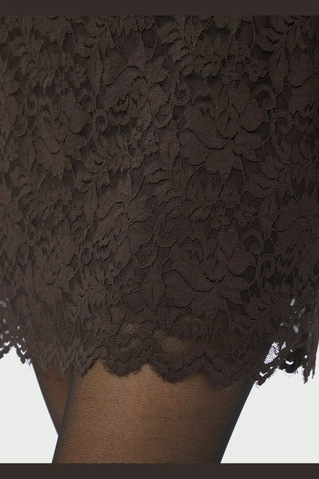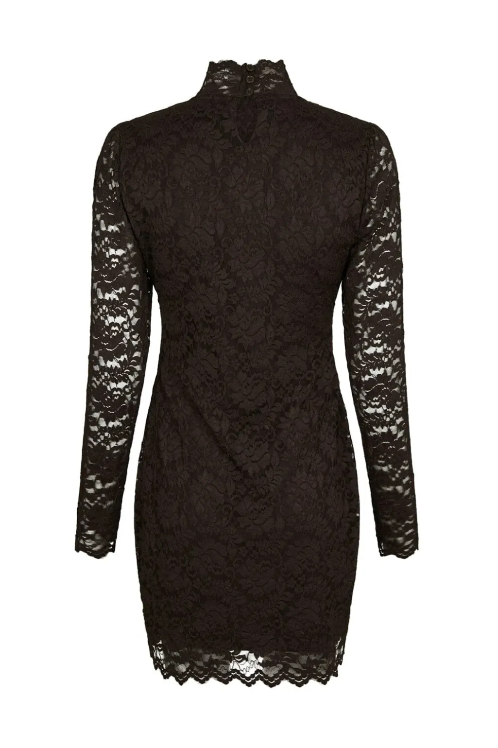 - Høj hals med blondedetaljer