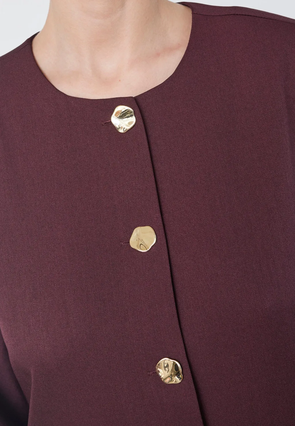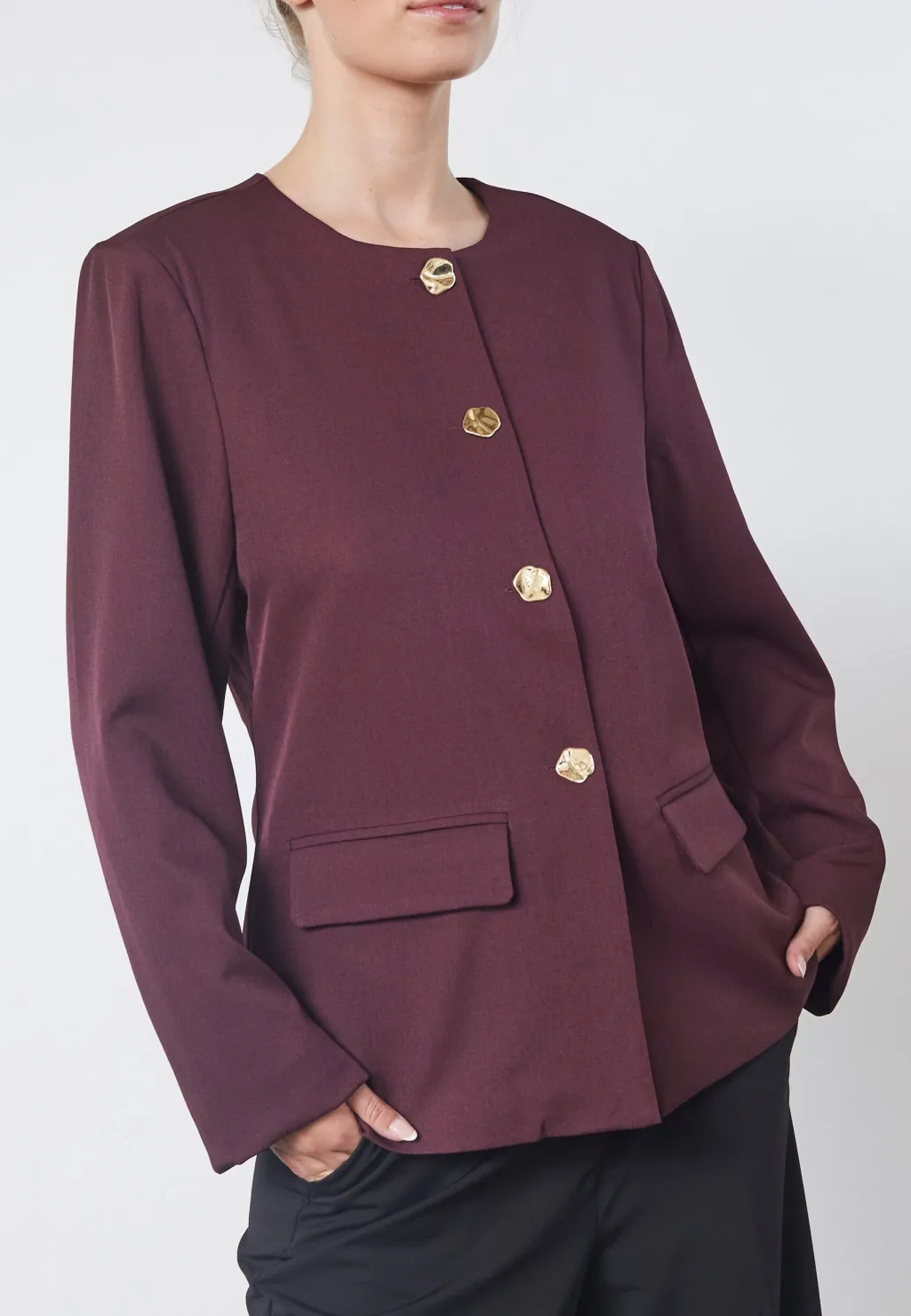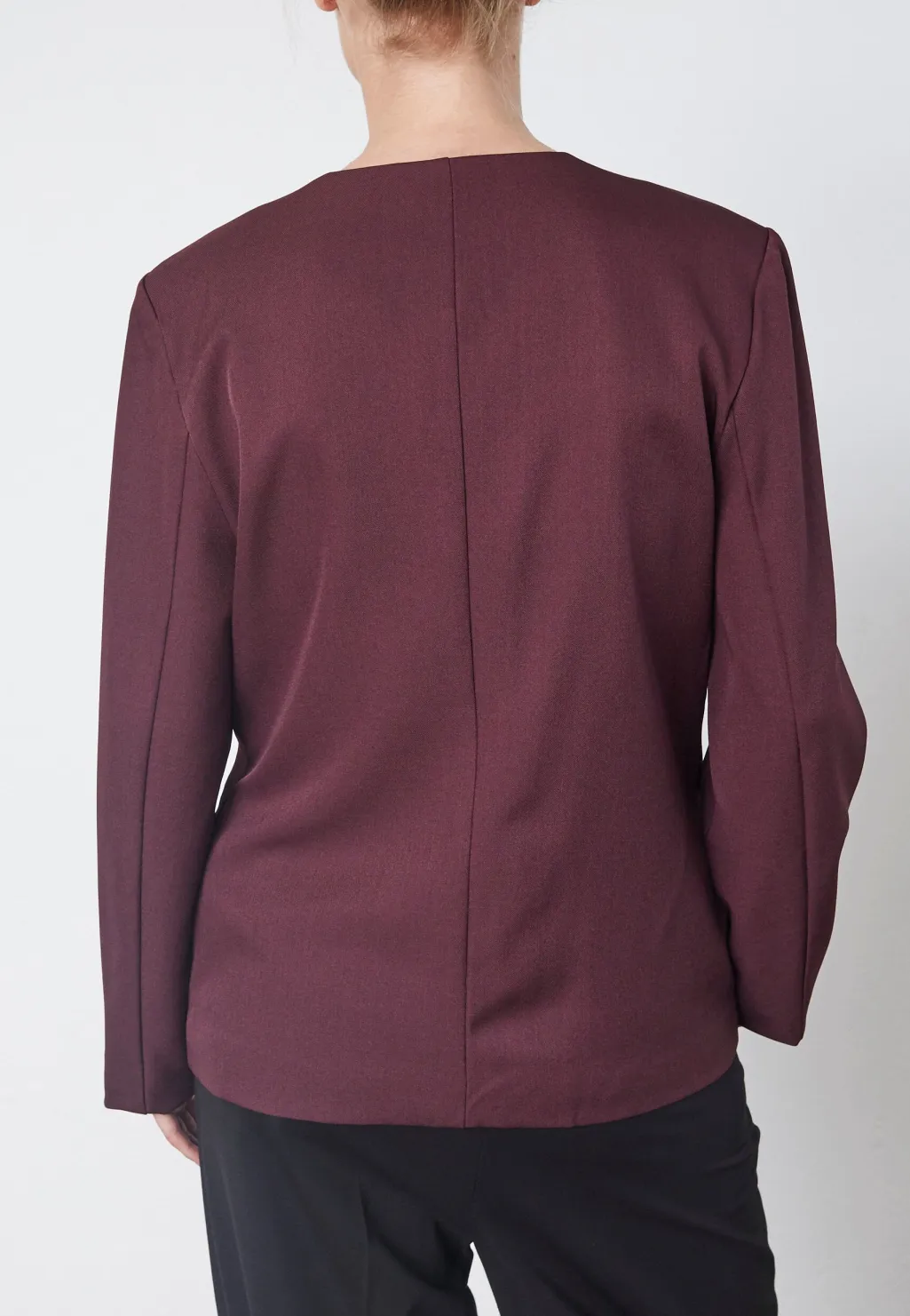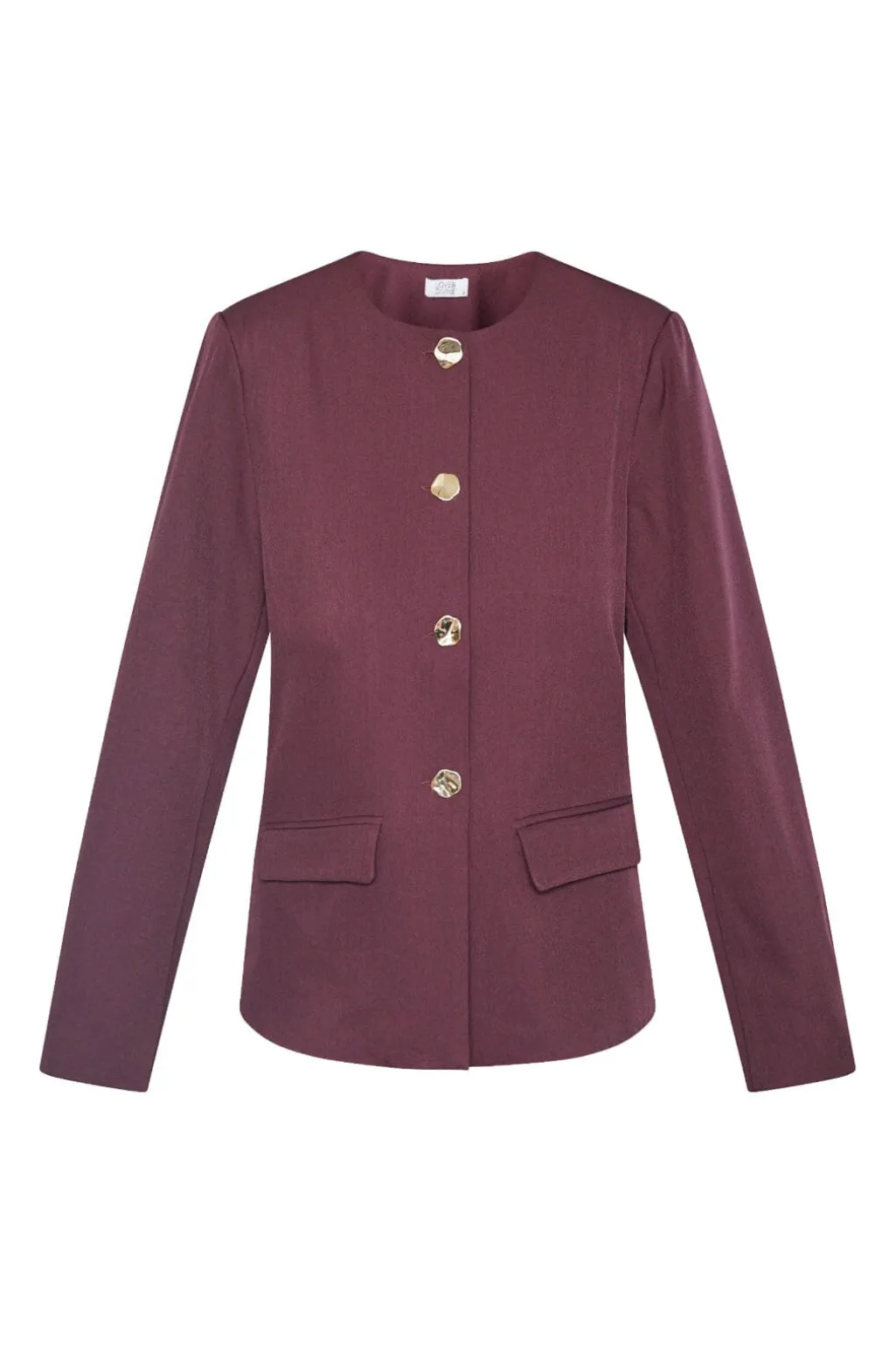 Blazer fra Love & Divine i mørk bordeaux. Fremstillet i 96% polyester og 4% elastan, har den lange ærmer og en rund halsudskæring.