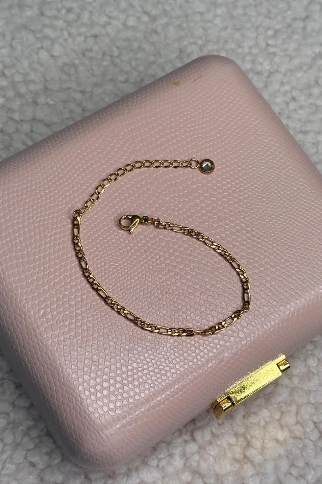 Forgyldt armbånd fra Mellow Moon med en enkel kæde og en lille sten som detalje. Den gyldne finish og stenen skaber et harmonisk smykke til både hverdag og fest.