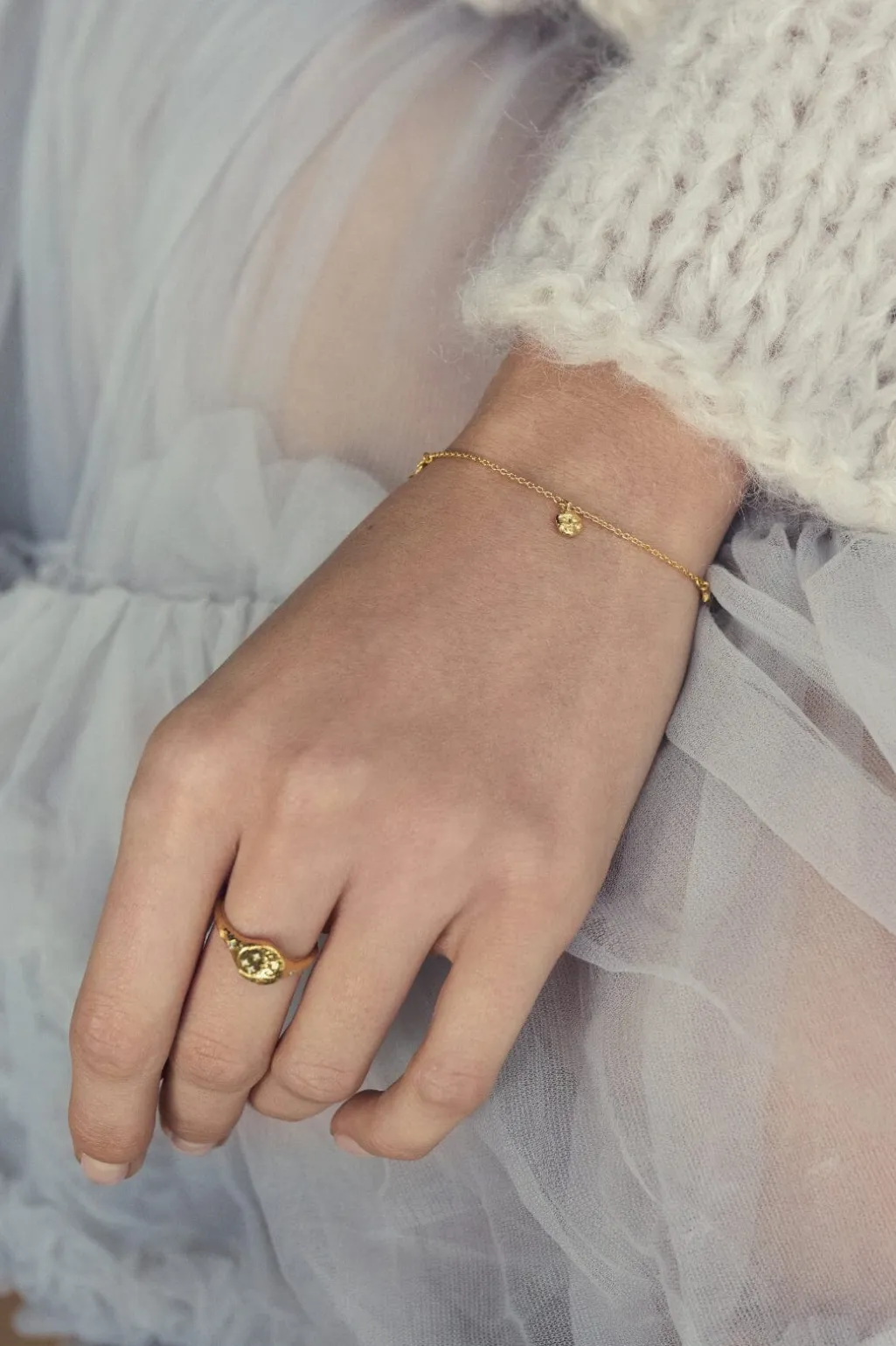 Armbånd fra Maanesten lavet af genanvendt sterlingsølv belagt med 18 karat guld. Designet er inspireret af månens faser med tre vedhæng: måne, sol og stjerne.