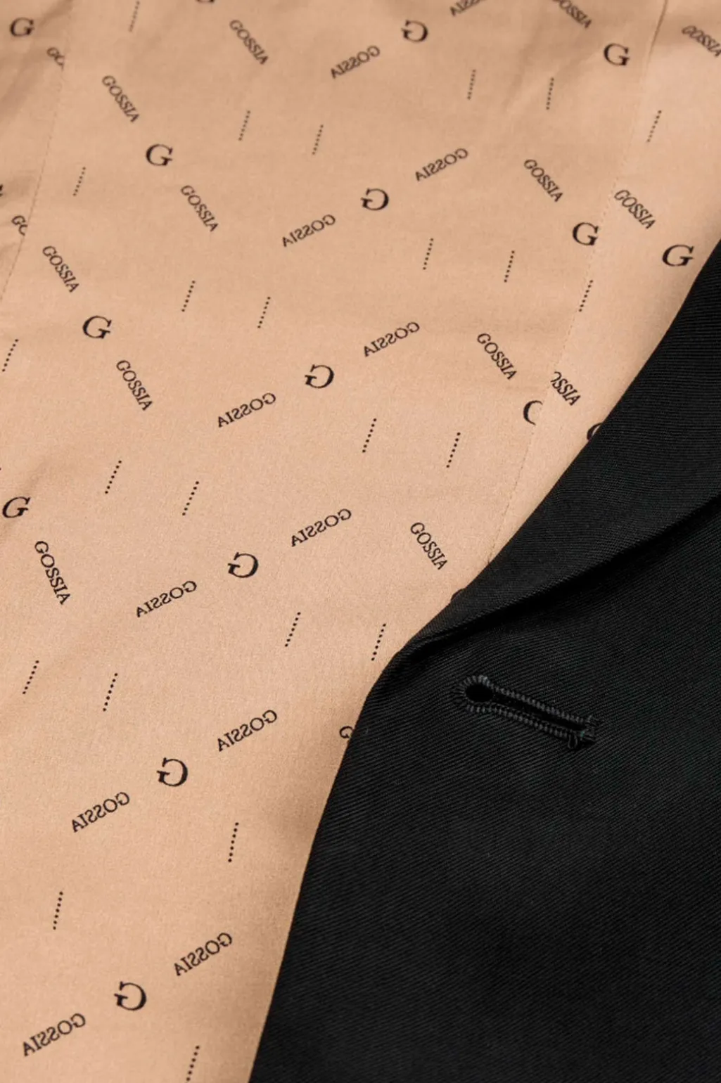 Sort blazer fra Gossia med oversize pasform og dobbeltbrystet design. Den har skulderpuder, der giver en struktureret silhuet, og v-halsudskæring med knapper foran.