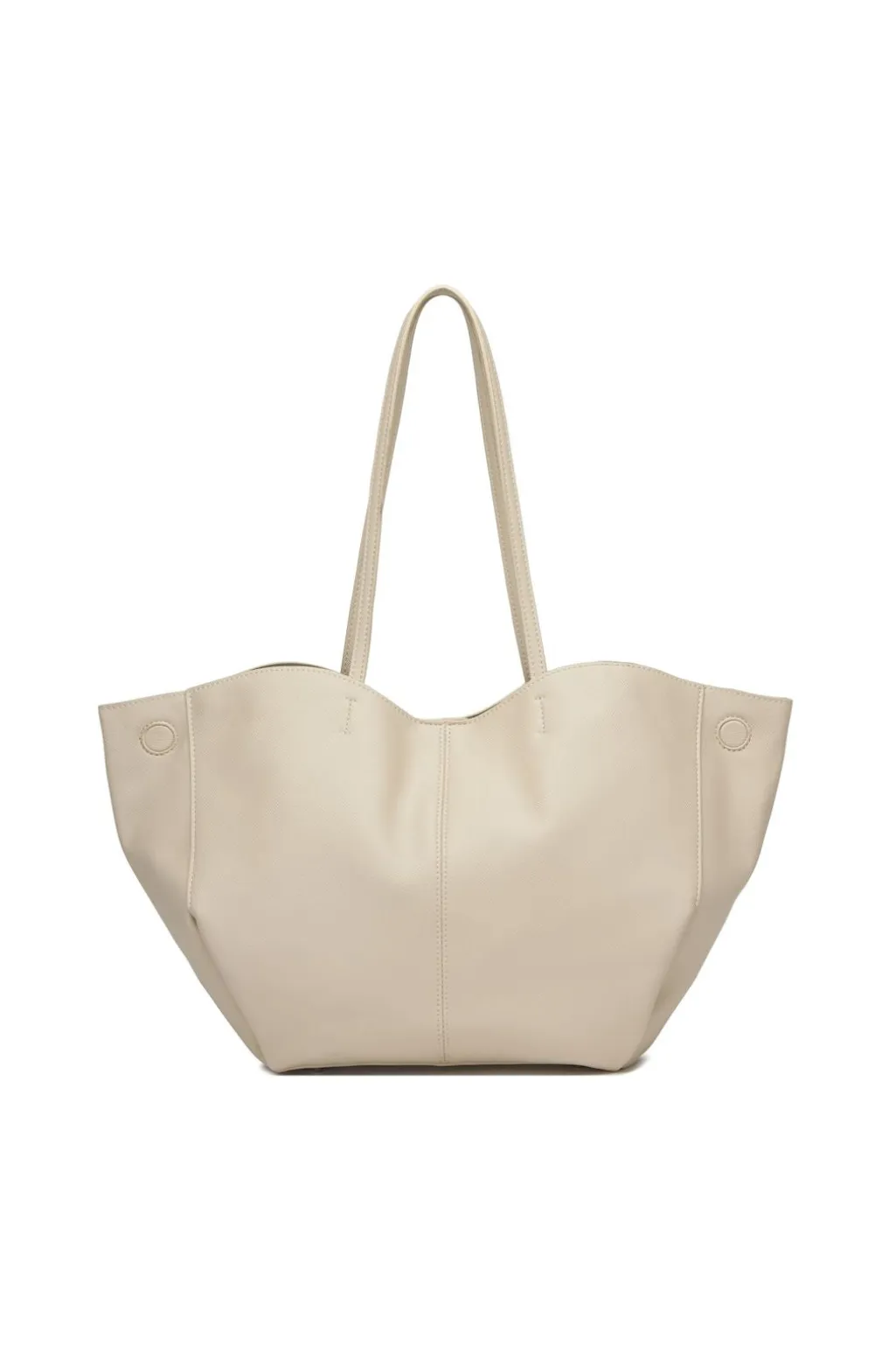 En stor taske fra Noella i beige. Tasken har et minimalistisk design med lange håndtag og en blød overflade.