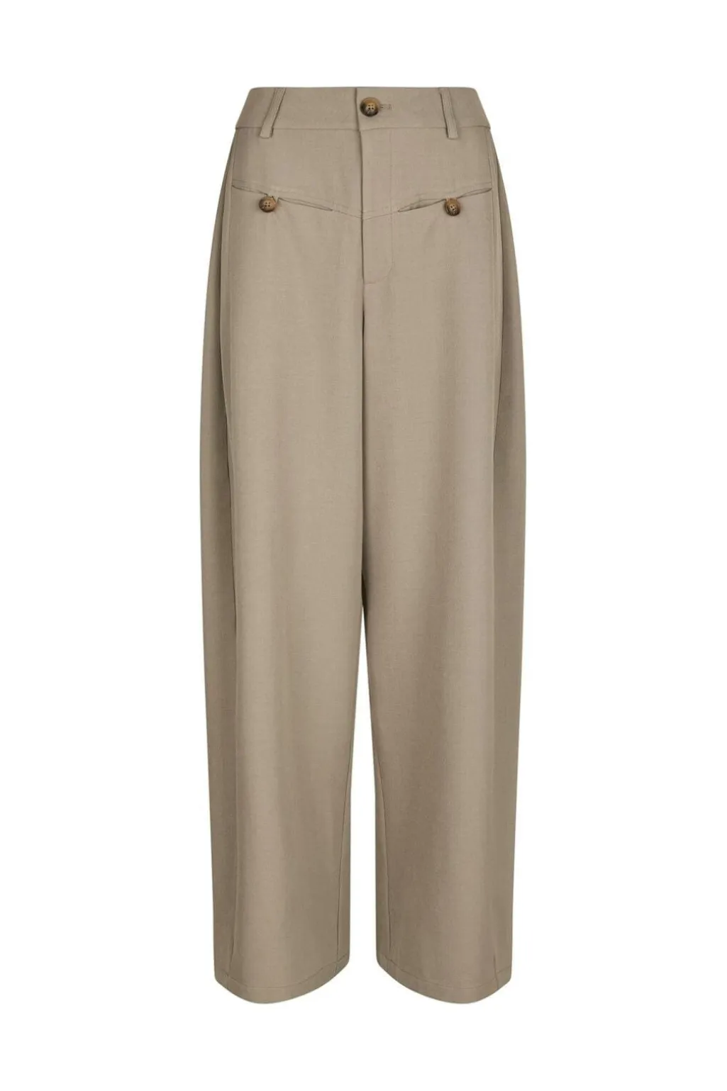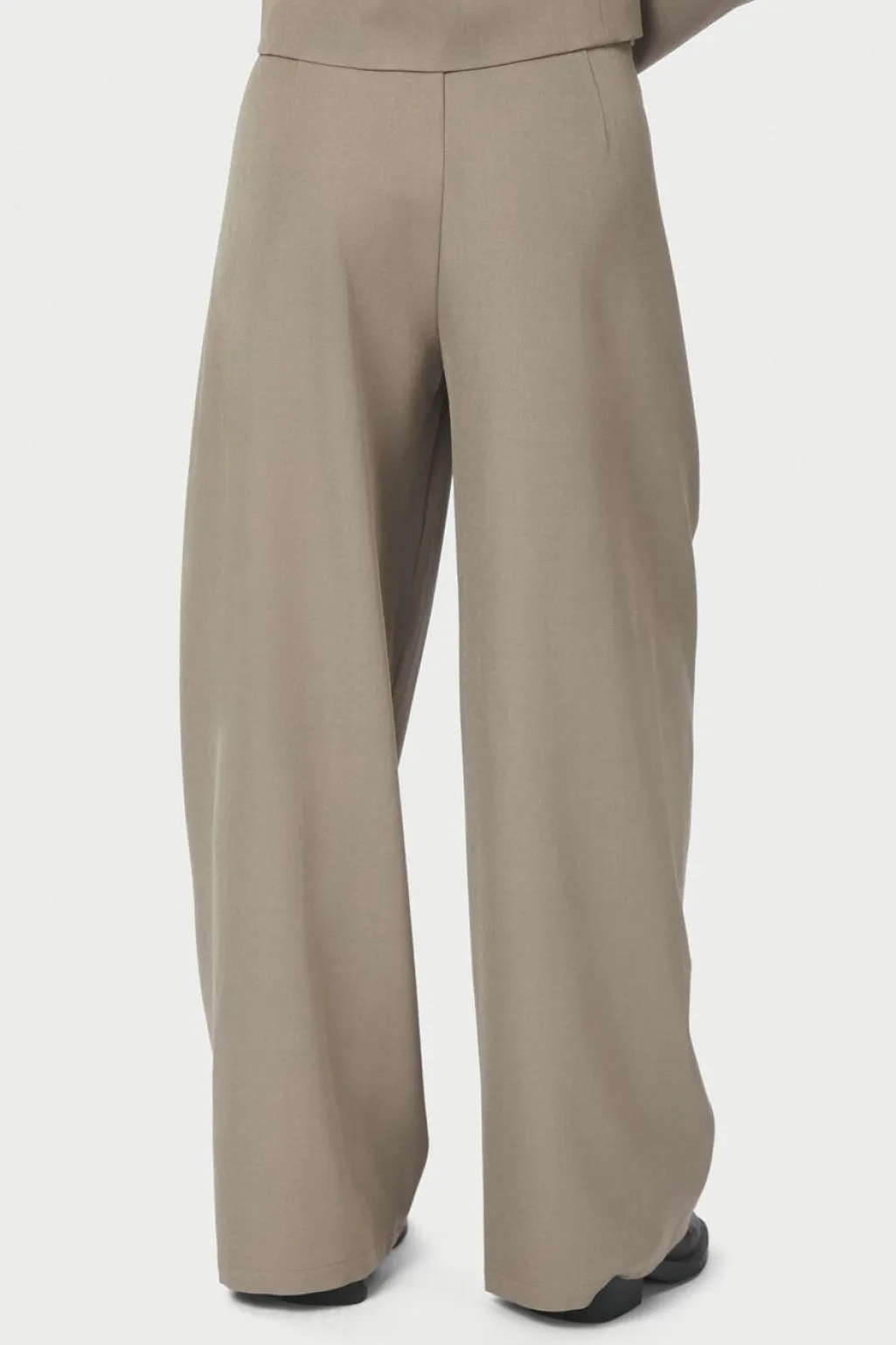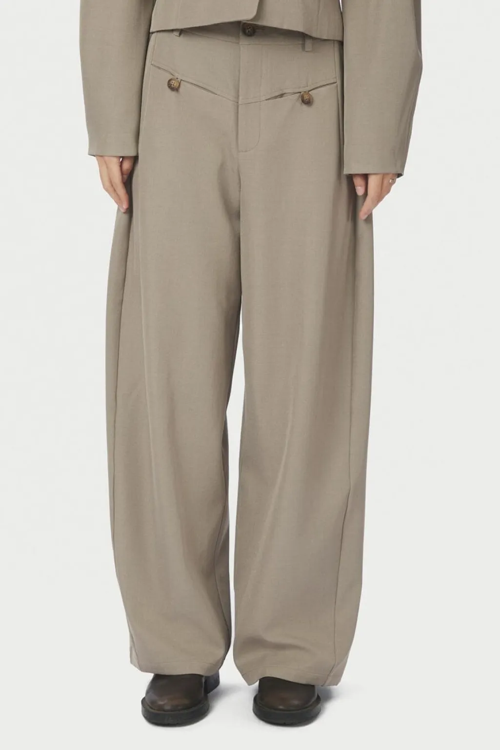 Bukser fra Neo Noir i en varm grå farve. Bukserne har en løs pasform med vide bukseben og regulær talje.