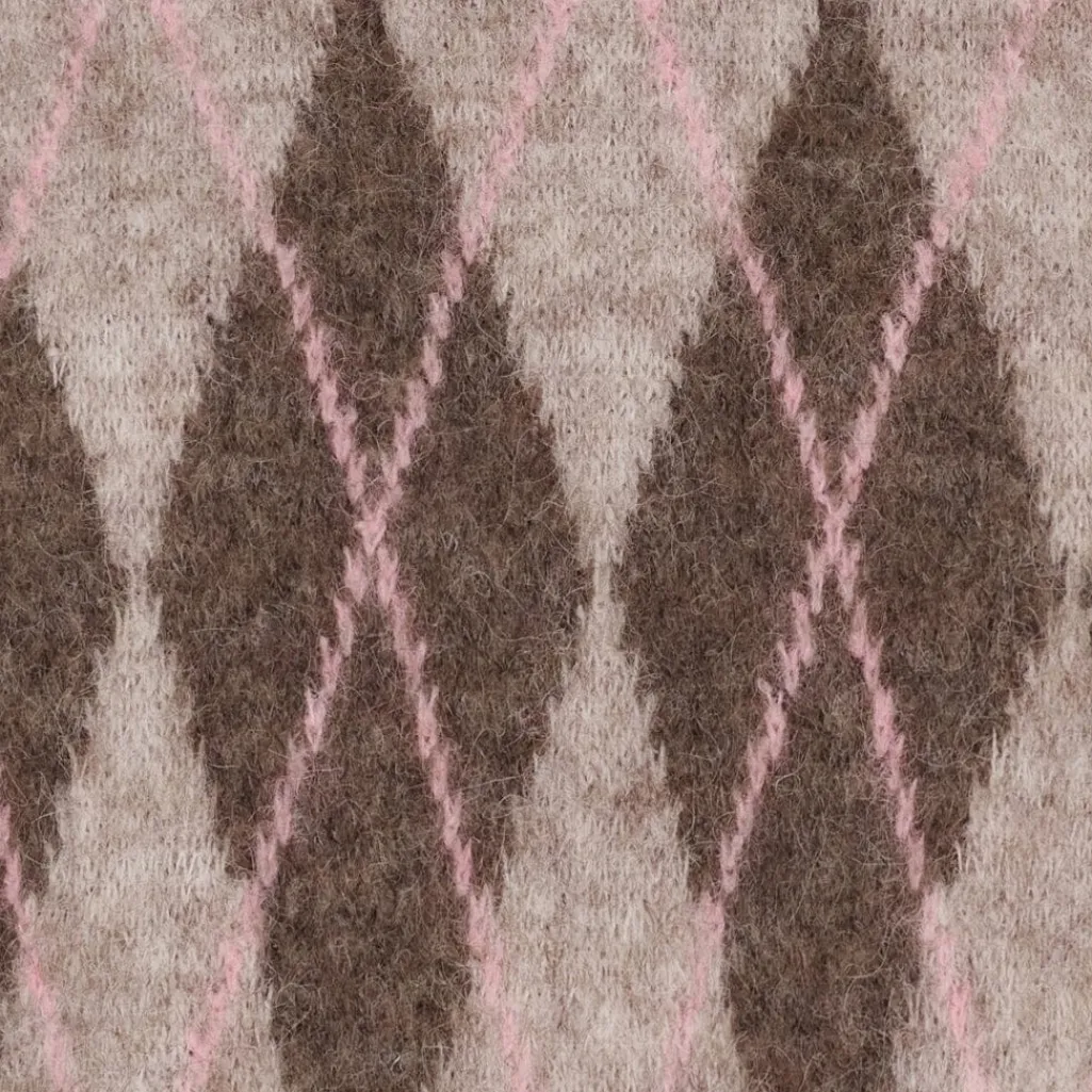 Striktrøje fra Marta Du Chateau i beige og rosa med et ternet mønster. Trøjen har en rund hals og lange ærmer.
