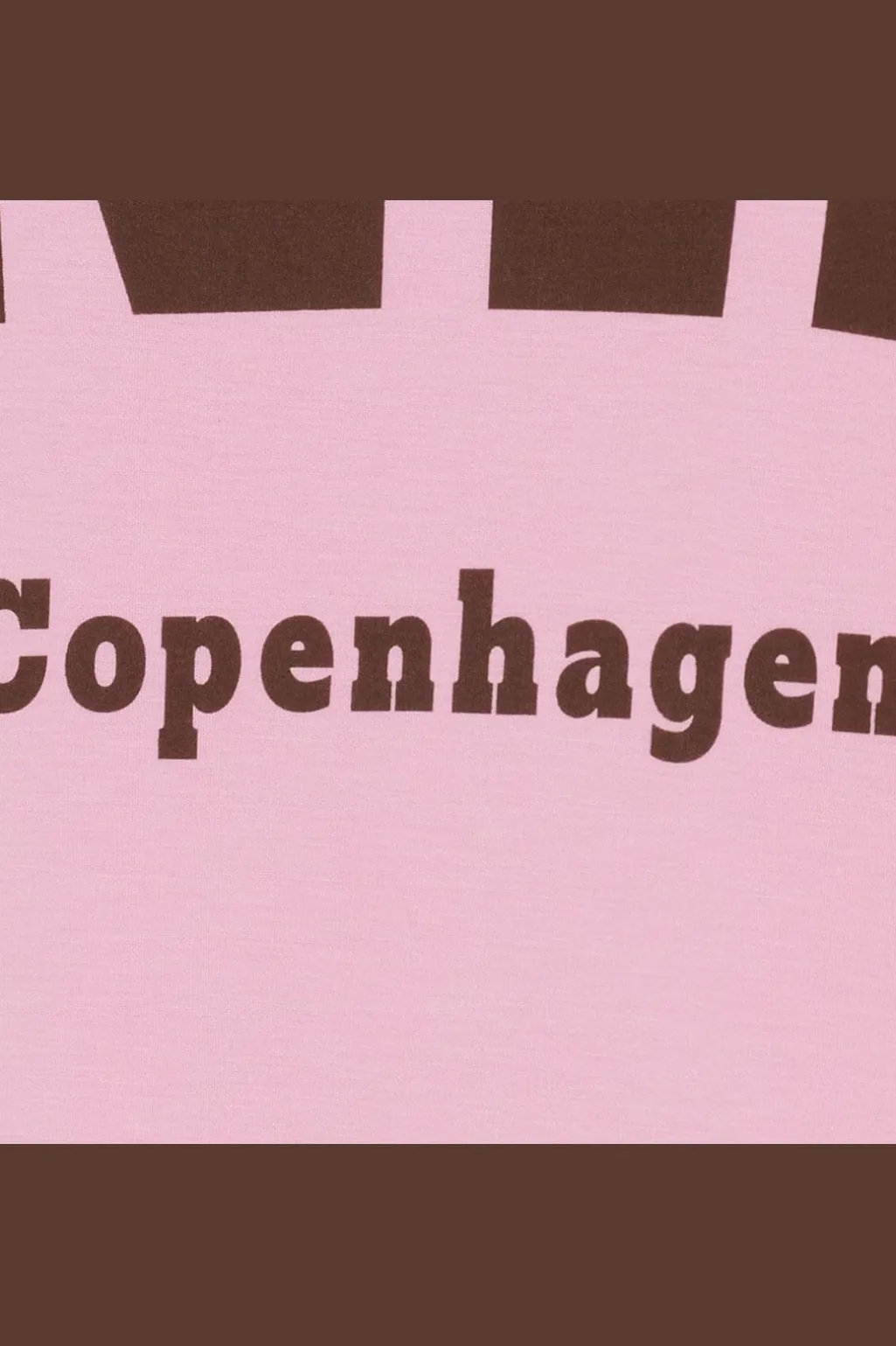 Lyserød sweatshirt fra Marta Du Chateau med sort Copenhagen-tryk på brystet og ærmerne. Den har en løs pasform og rund halsudskæring.